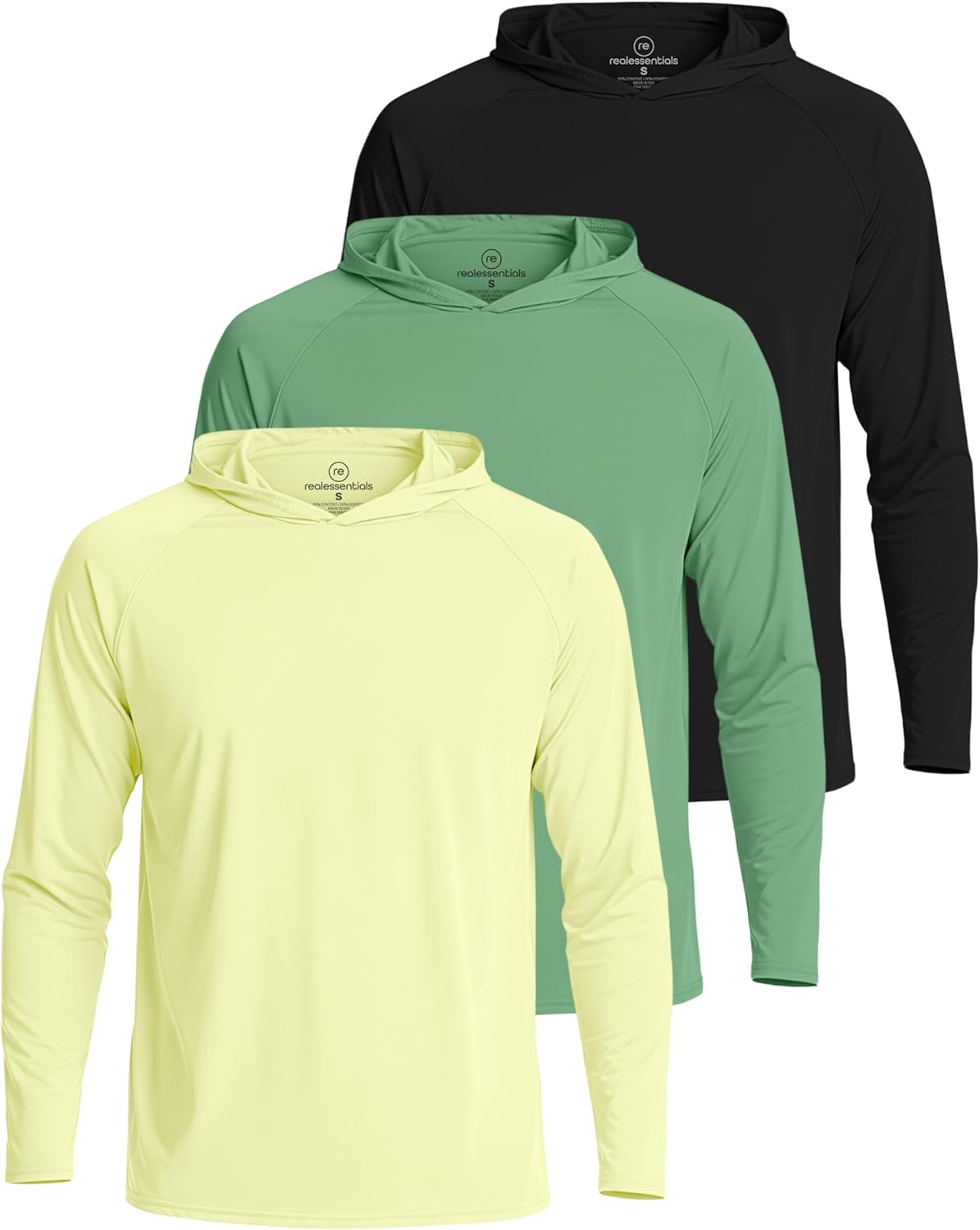 Real Essentials 3 Pack: Men's Long Sleeve Rash Guard Hoodie - SPF UV Sun Protection Workout Fishing Swim Shirts (Big & Tall)