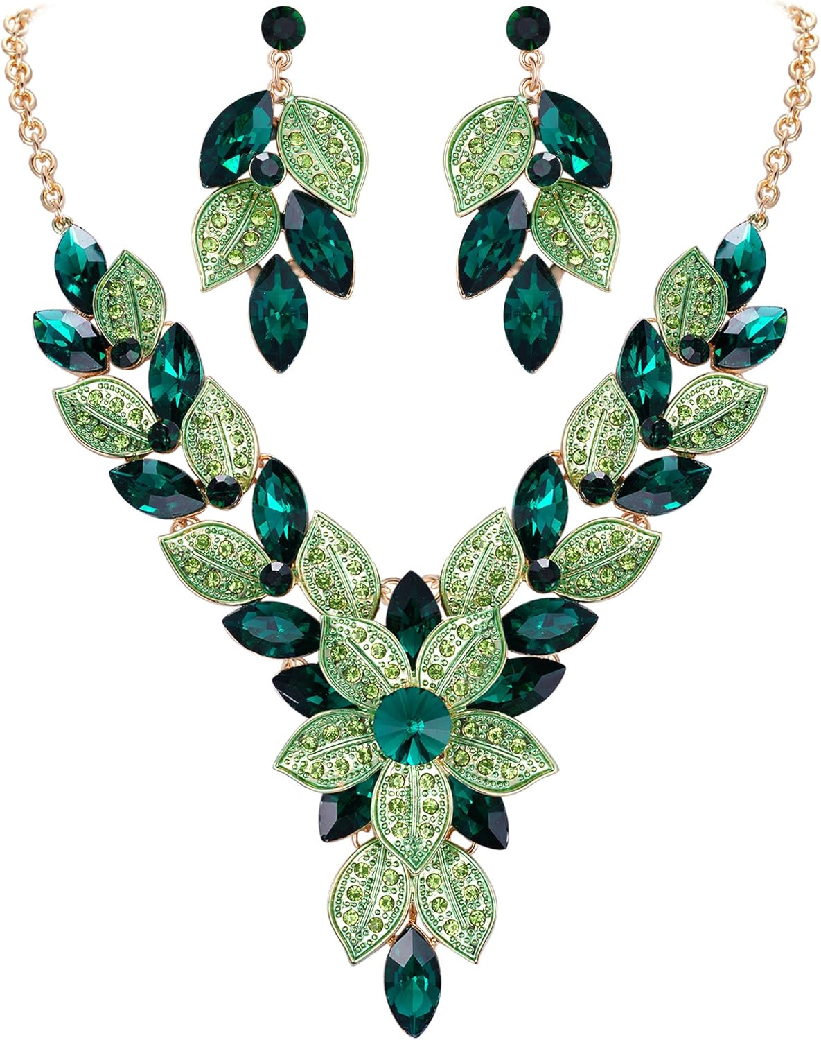 EVER FAITH Women's Crystal Elegant Bridal Cluster Flower Leaf Drop Necklace Earrings Set