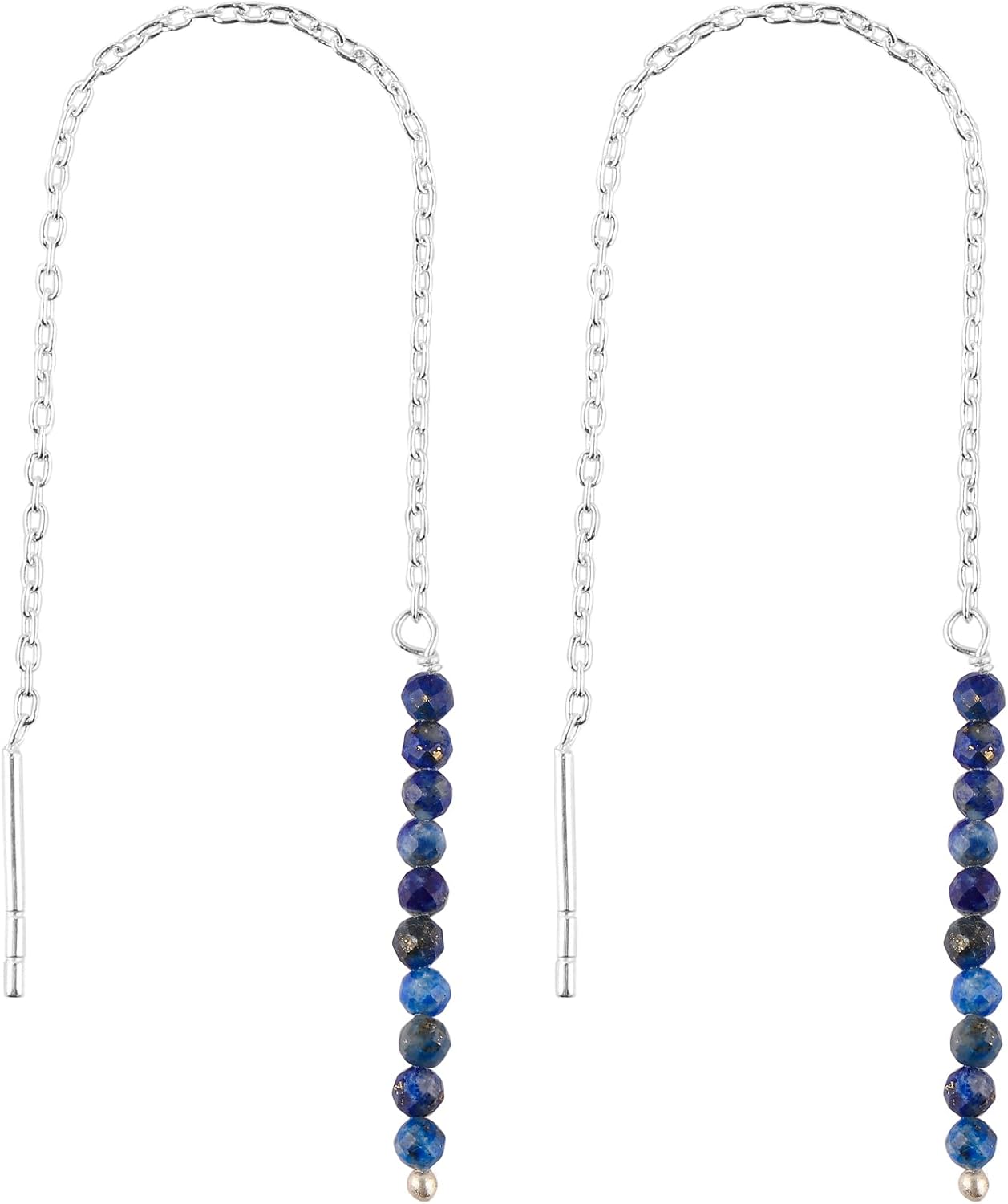 Threader Earrings for Women with Gemstone Beads - 2mm Natural Gemstone, Adjustable Pull-Through Long & Short Dangle Design, 3+1 Inch Silver Plated Earrings, Lightweight Crystal Jewellery Gift