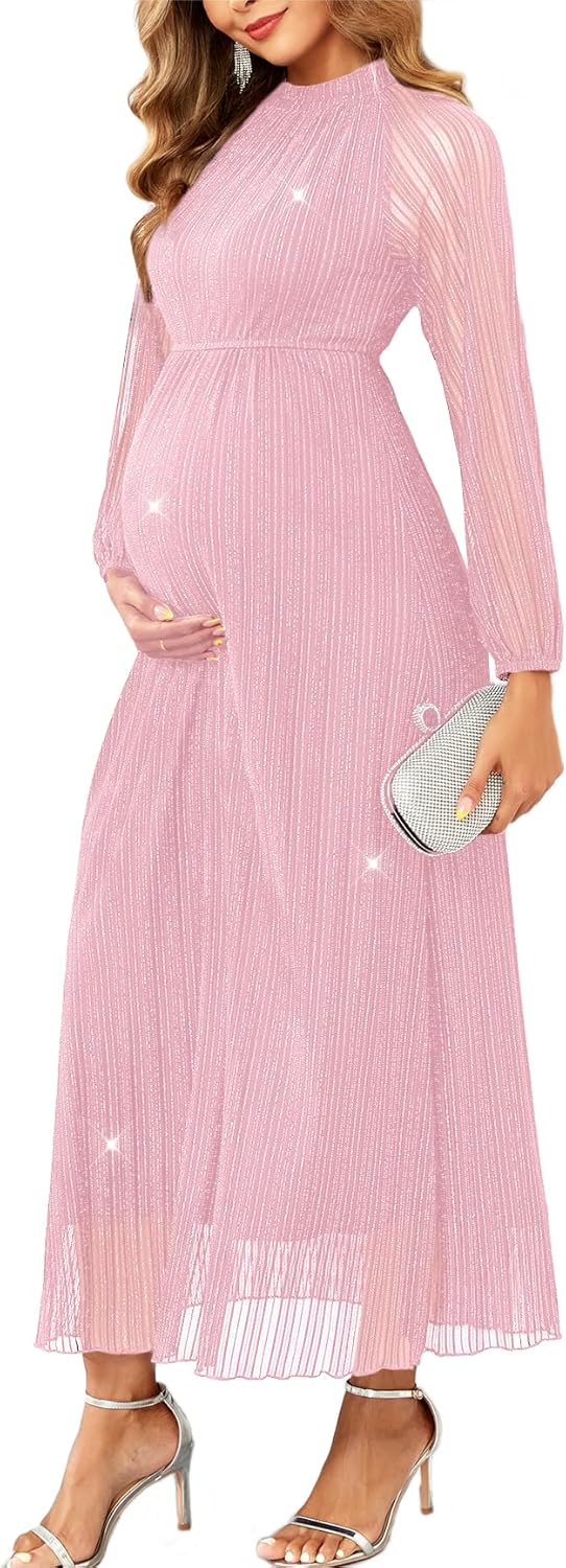 CYCLAMEN Formal Maternity Dress Sparkly Halter Neck A-Line Maxi Gown Baby Shower Pregnancy Photoshoot Wedding Guests