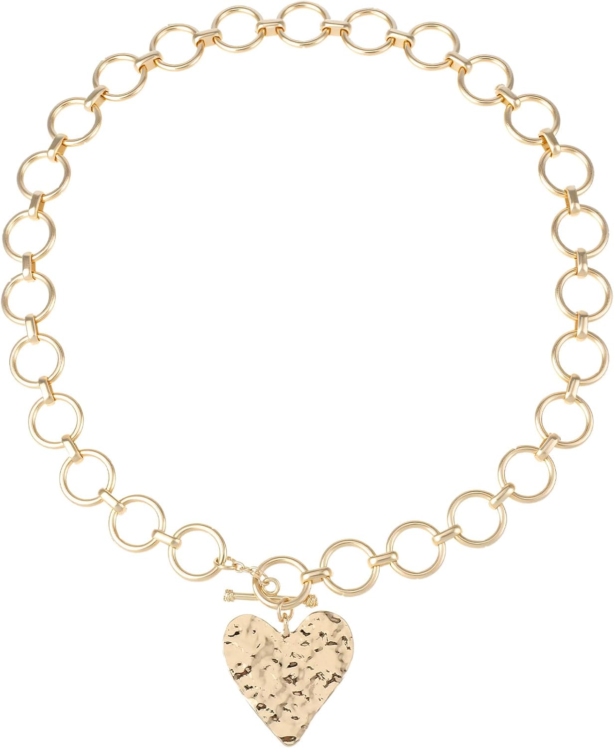 Xindojuz Chunky Gold Necklace for Women, Large Statement Hammered Heart Pendant Necklace, Gold Plated Vintage Chunky Paperclip Chain Necklaces for Women Trendy Jewelry Gift