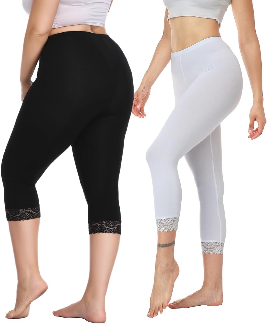 caringgarden 2 Pack High Waisted Yoga Capris for Women Stretchy Cropped Leggings Lightweight Gym Tights