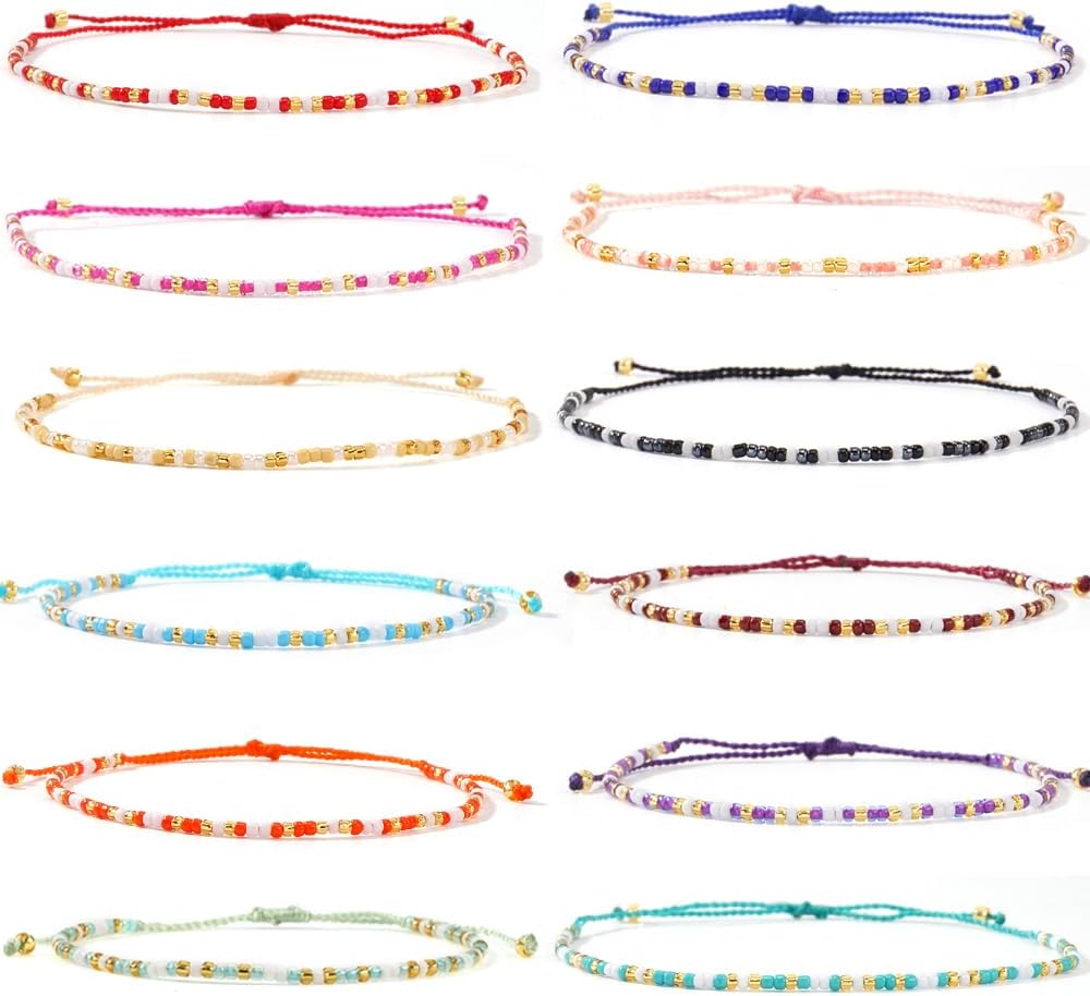 Colorful Beaded Bracelet Stack for Women,Handmade Bohemian Small Beads Adjustable Braided String Stackabel Bracelets Set Minimalism Jewelry Gift Friendship