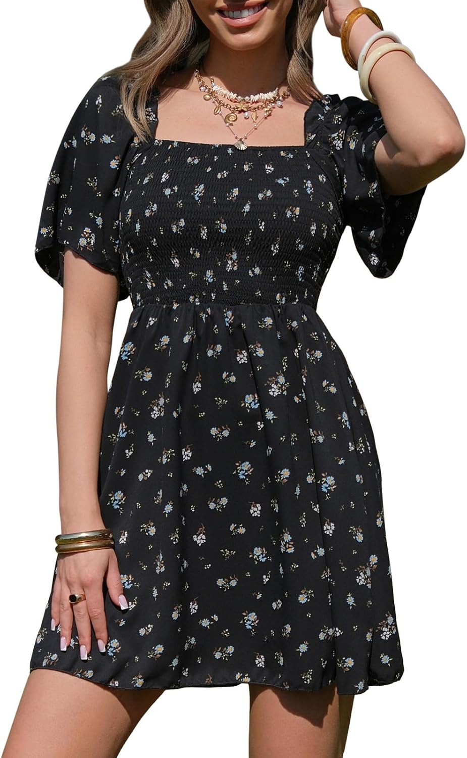 EXLURA Women's 2026 Summer Casual Square Neck Dresses Ruffle Short Sleeve Swiss Dot Flowy Mini Dress