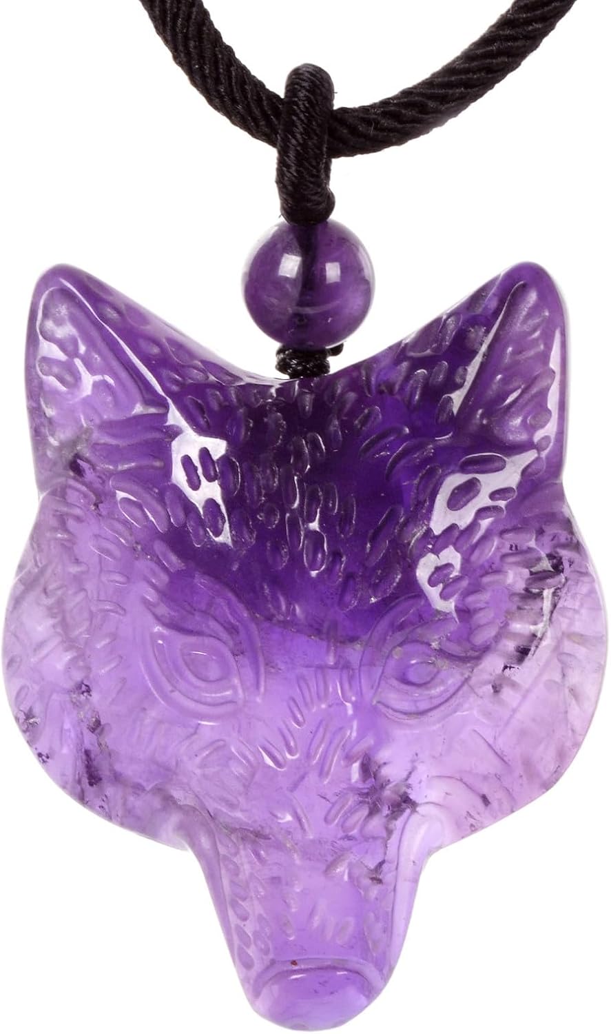 Justinstones Natural Gemstone Carved Wolf Head Reiki Chakra Animal Amulet Pendant Necklace 22 Inch