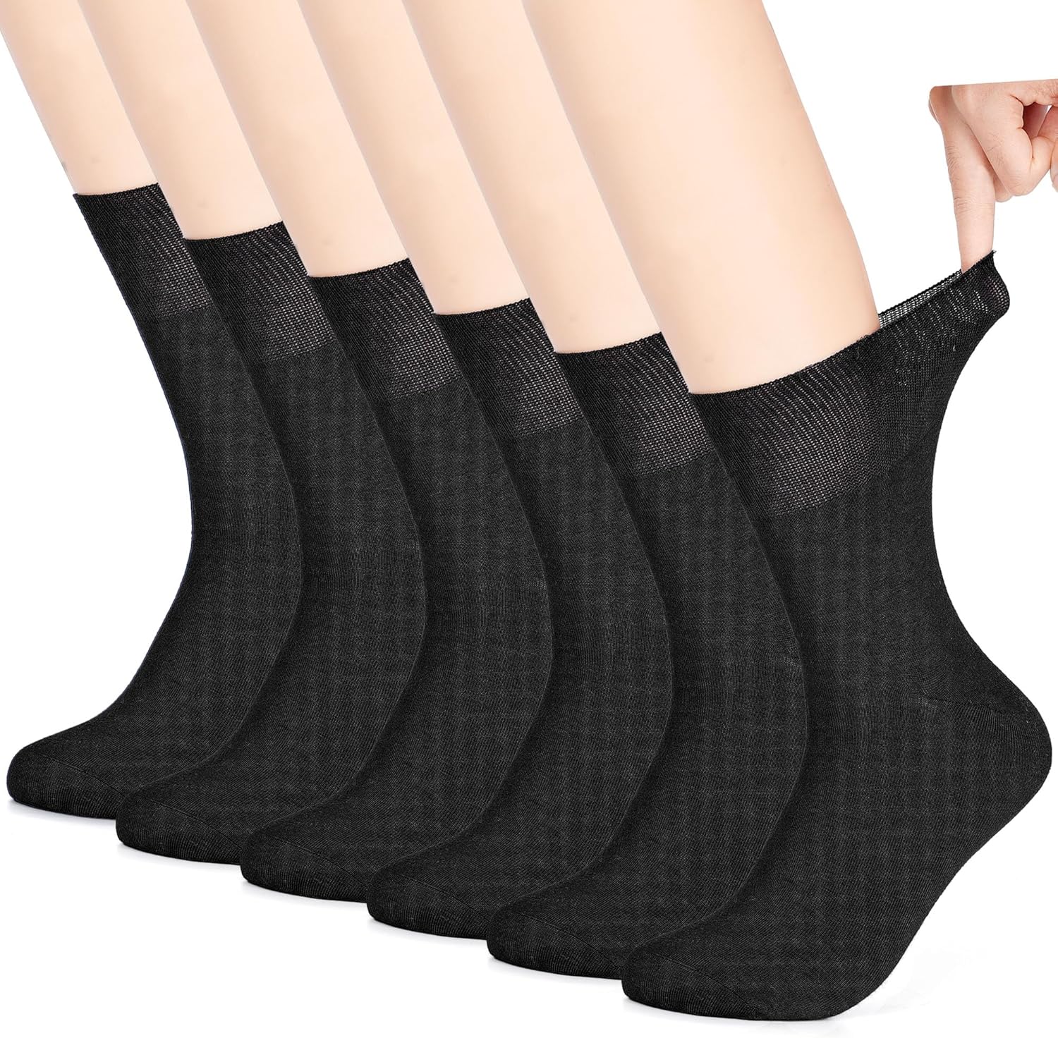 Diabetic Socks for Men & Women, Loose Cuff Non Binding Socks, Seamless Toe, 6 Pairs Extra Wide