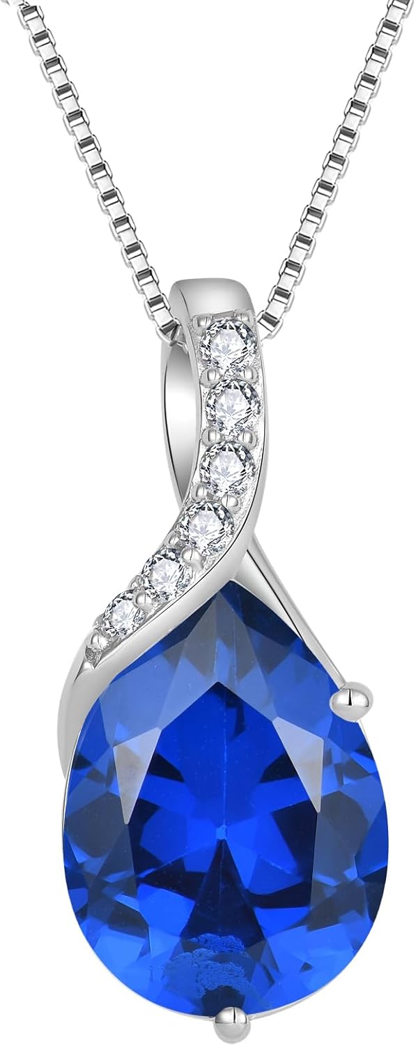 Birthstone Necklace for Women 925 Sterling Silver 10 * 14mm Pear Shaped Solitaire Birthstone Pendant Necklace Hypoallergenic Jewelry for Women