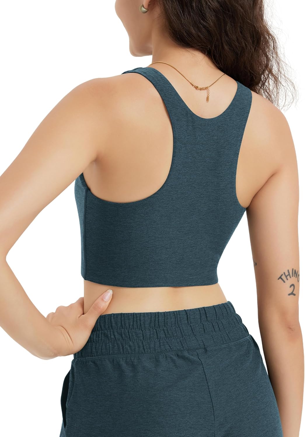 ODODOS Racerback Tank Bra for Women High Neck Non Padded Medium Support Sports Bra Workout Yoga Crop Tops