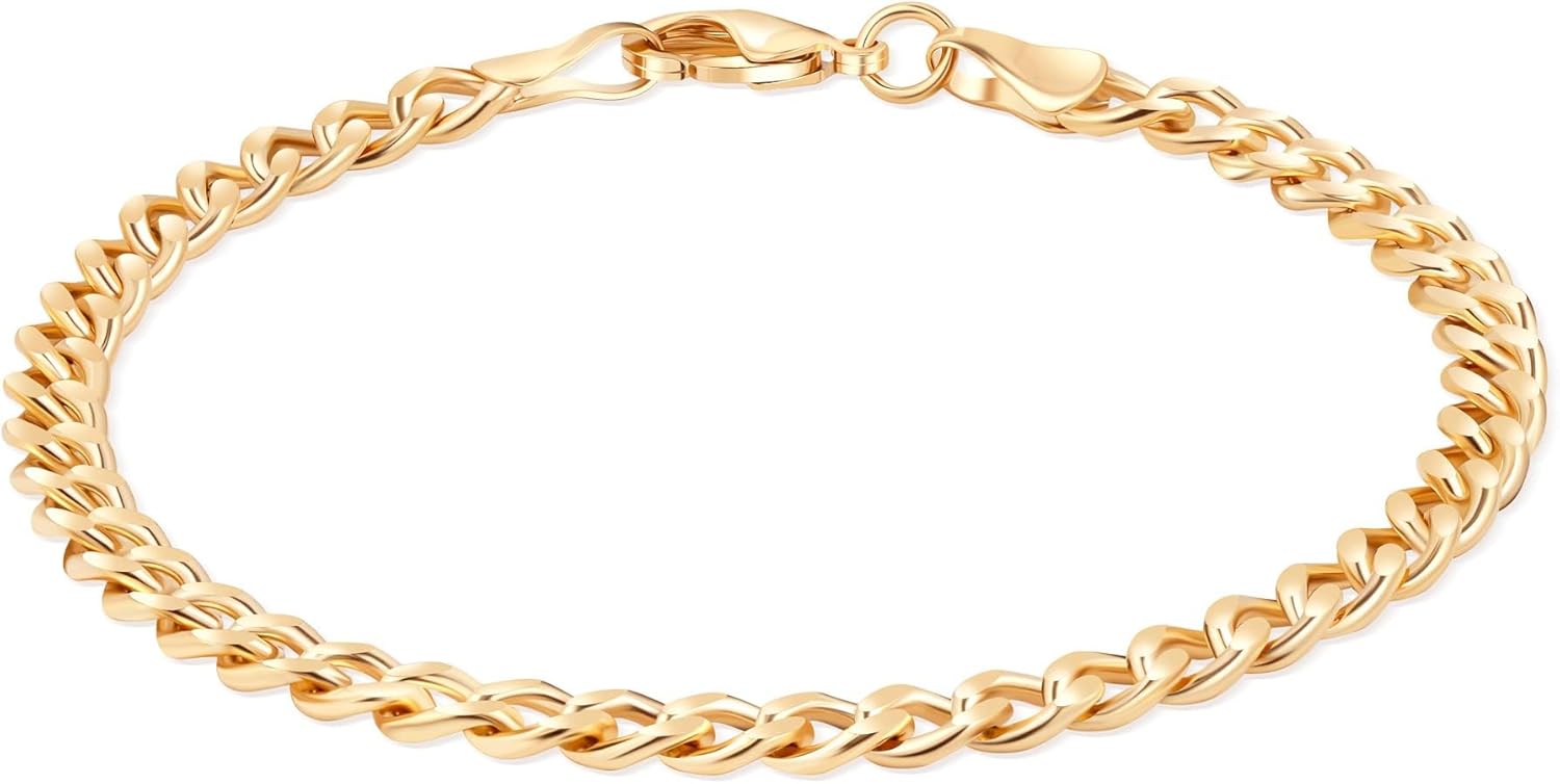 Barzel 18K Gold Plated Curb/Cuban Link Chain Bracelet - Made In Brazil