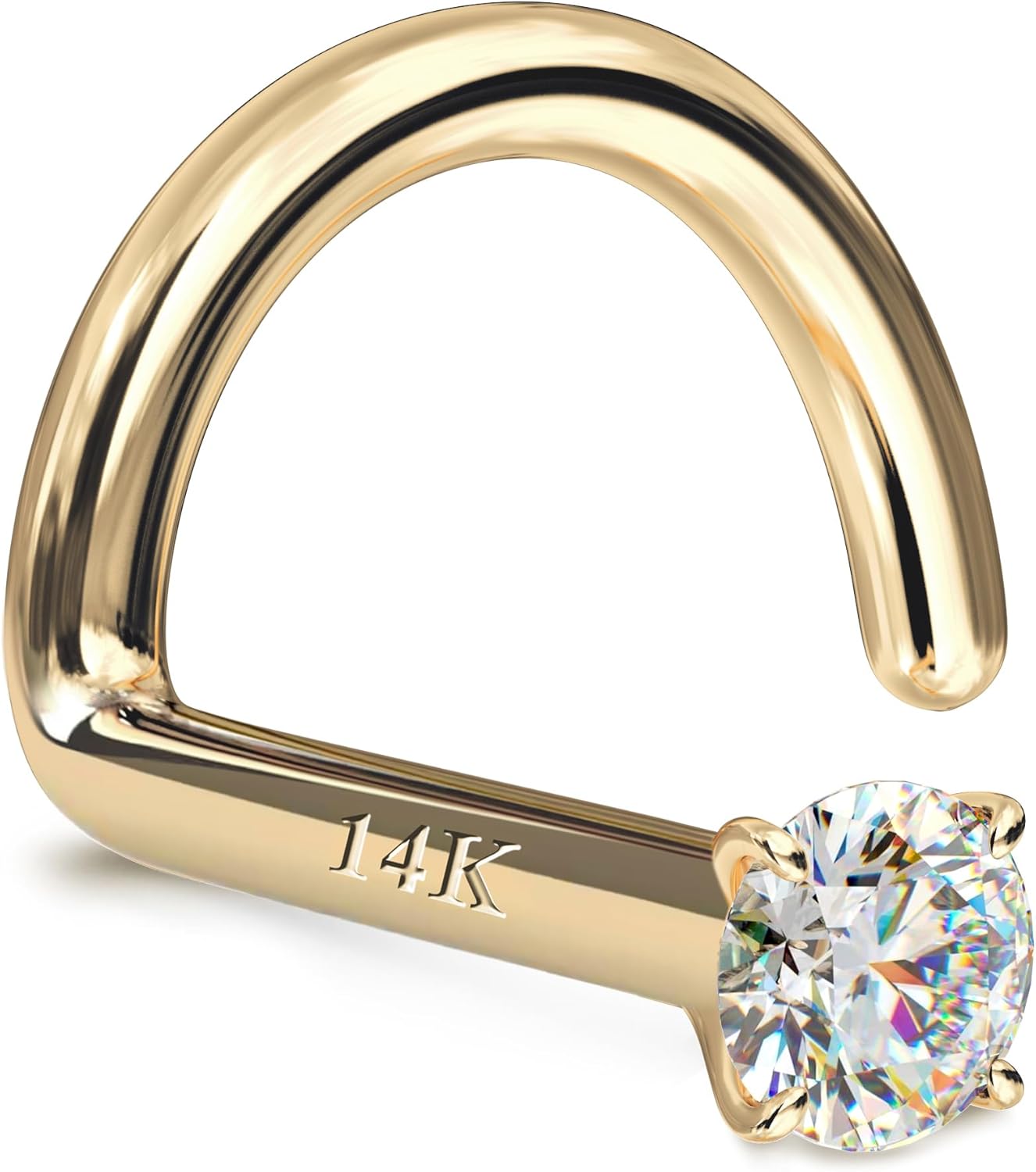 14K Gold Nose Rings Studs : Solid Gold 18G 20G 22G Screw Nose Rings Simulated Diamond CZ Nose Studs Hypoallergenic Nose Piercings for Women Men