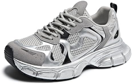 Womens Fashion Leather Chunky Platform Lace Up Sneakers Casual Non-Slip Round Toe Tennis Gym Walking Daily Dad Shoes