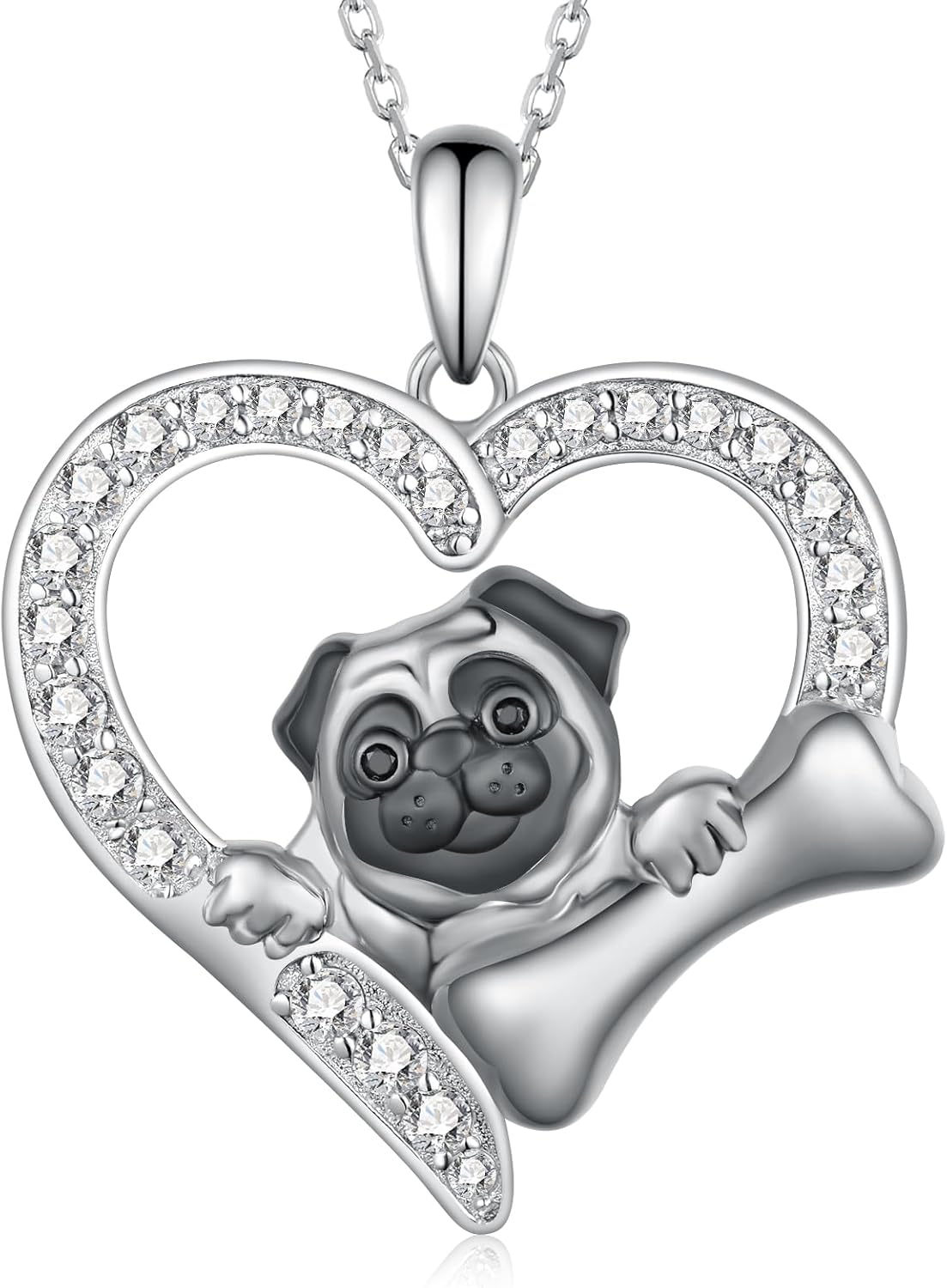 Pug Necklace 925 Sterling Silver Dog Pendant Necklace Cute Animal Jewelry Gifts for Women Dog Lover