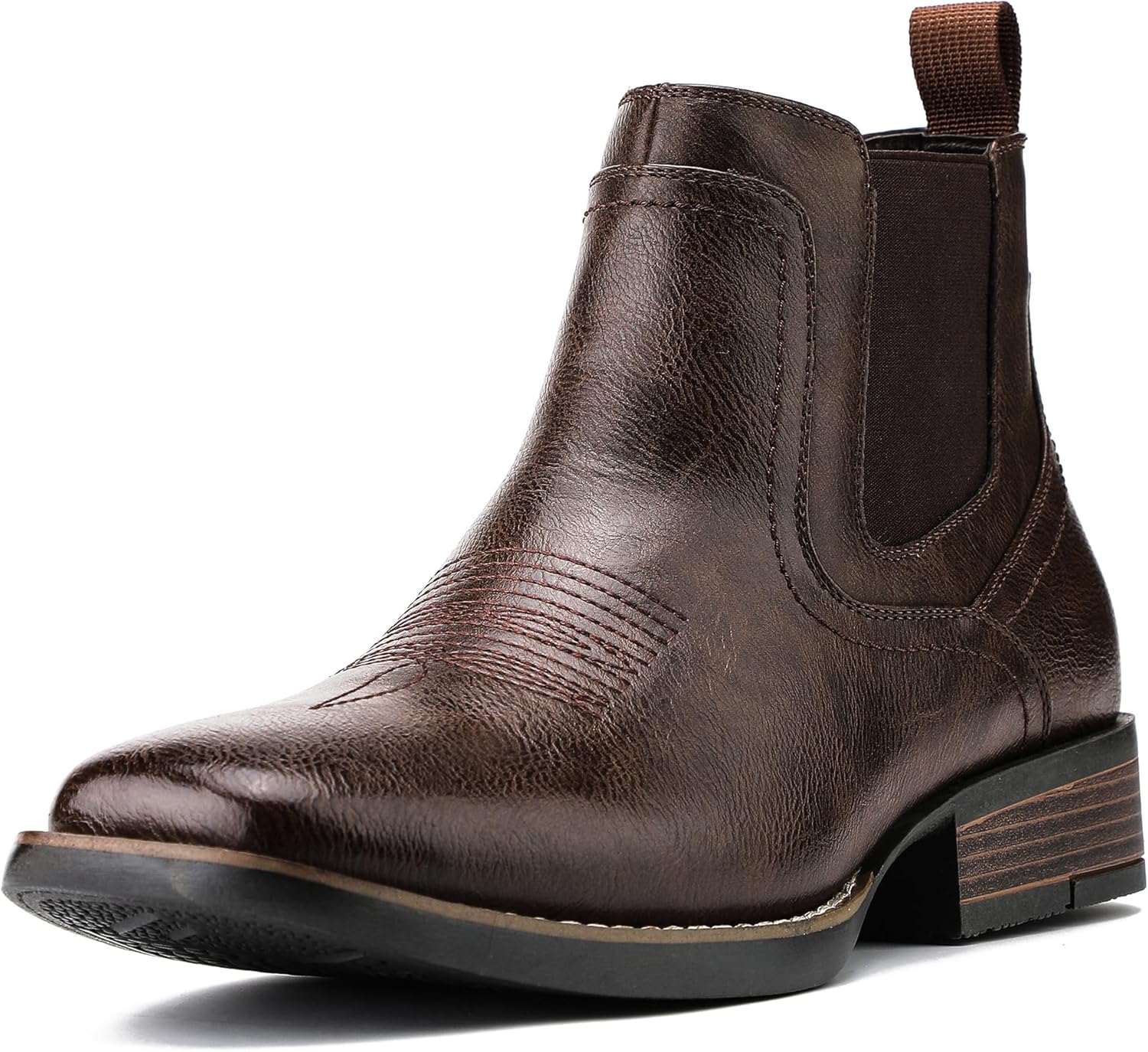 JASONSTAR Western Cowboy Boots for Men - Mens Square Toe Chelsea Boots Ankle Cowboy Boots for Men Casual Retro Stylish Boots