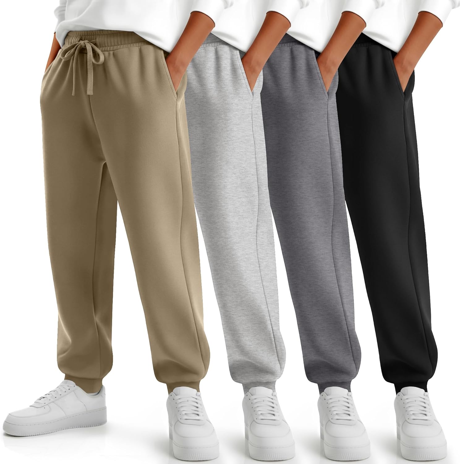 4 Pack Boys Jogger Sweatpants Athletic Casual Basic Pants Kids Pull on Soft Pants with Pockets Drawstring