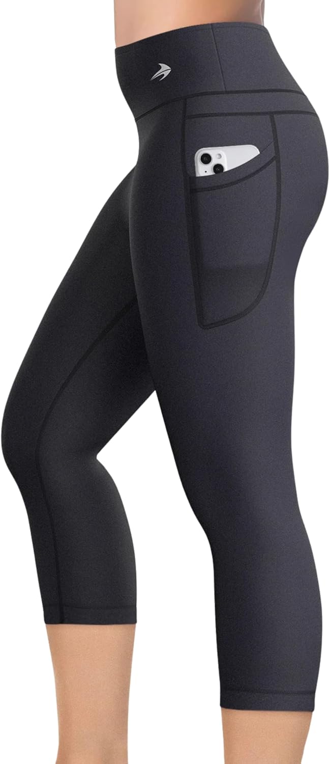 CompressionZ High Waisted Capri Compression Leggings for Women Tummy Control - Workout, Gym, Pilates, Travel, Yoga Pants