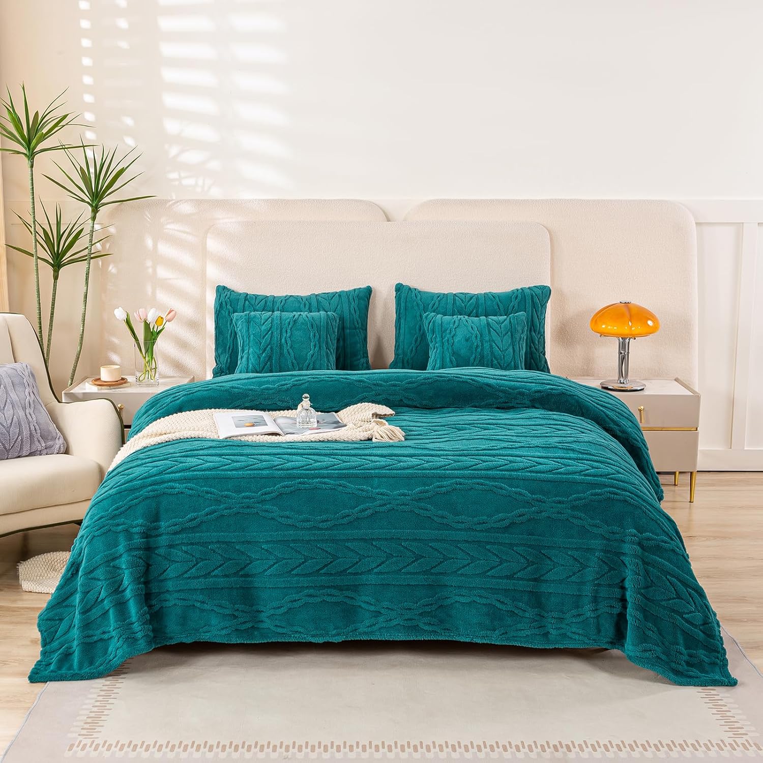 YUSOKI Queen Size Blanket Single Layer,Weight(4.4lb),370GMS-3D Stylish Design for Gift Home Decor (Teal,90"x90")
