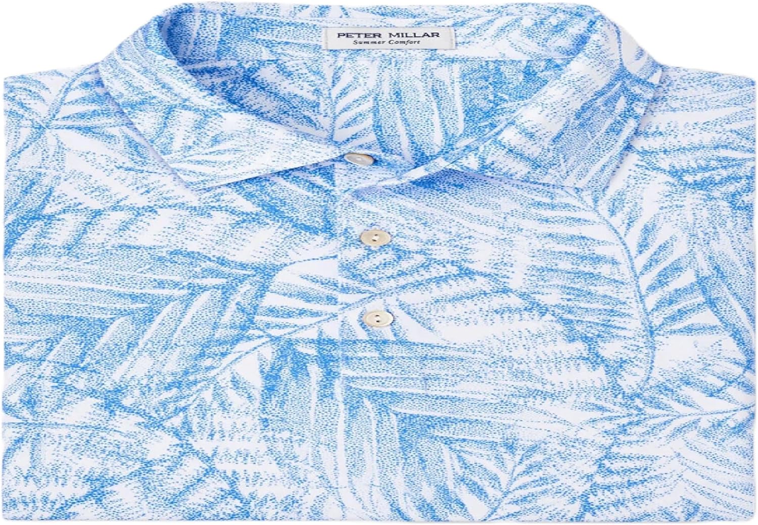 PETER MILLAR Men's Blue Frost Ace Newspaper Print Cotton-Blend Pique Polo Size Medium