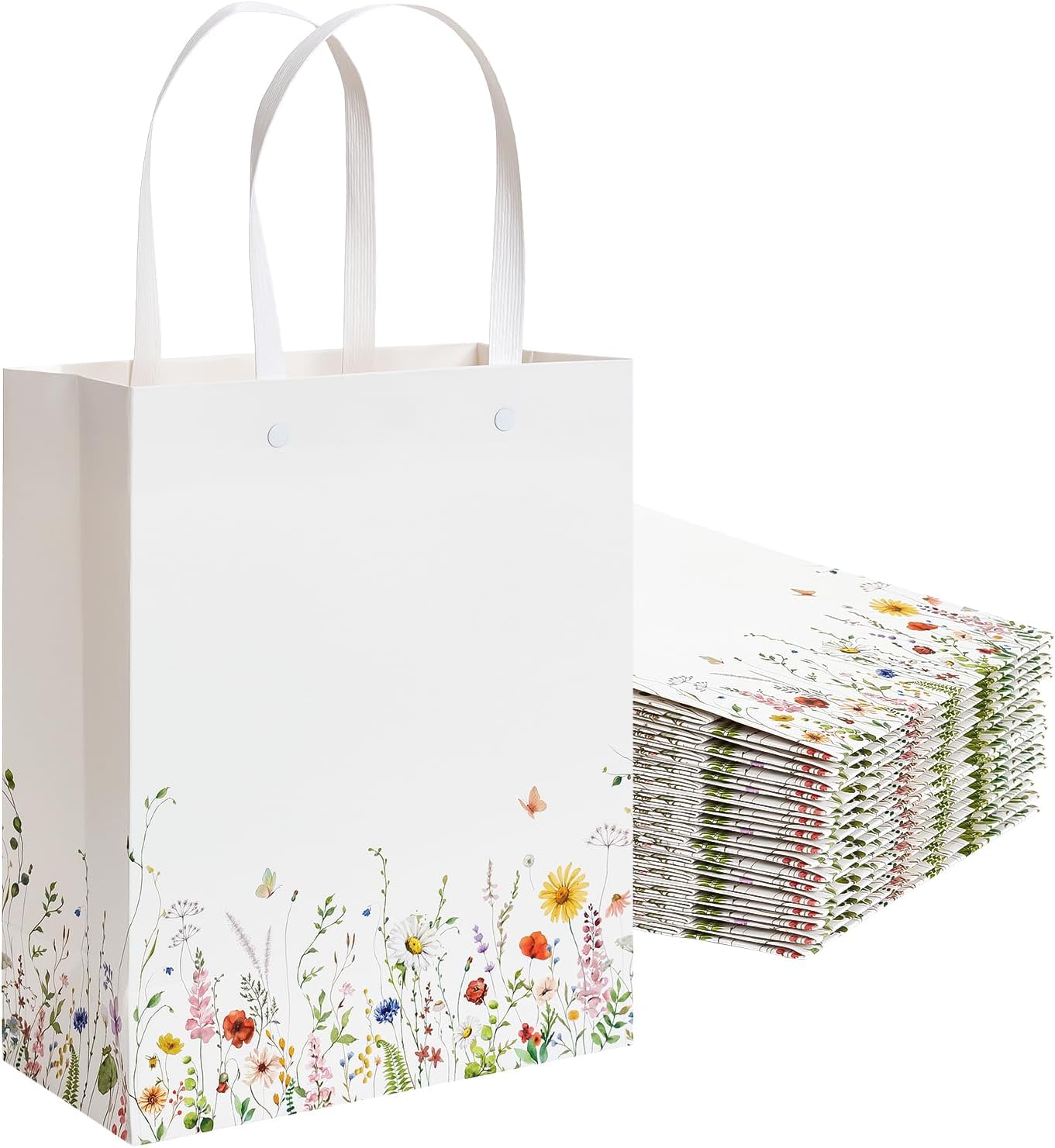 Crisky Paper Gift Bags with Handles, 25 Pack Wildflower Floral Gift Bags Medium Size for Wedding, Bridal Shower Gifts Bag, Baby Shower Party Favor, 10"x8"x4"