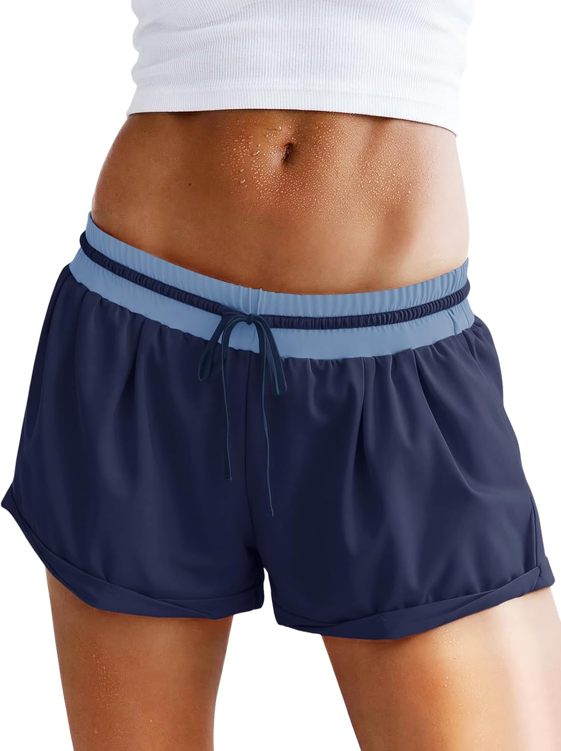 Fisoew Womens Running Shorts Lightweight Color Block High Waisted Drawstring Workout Yoga Athletic Shorts Pockets
