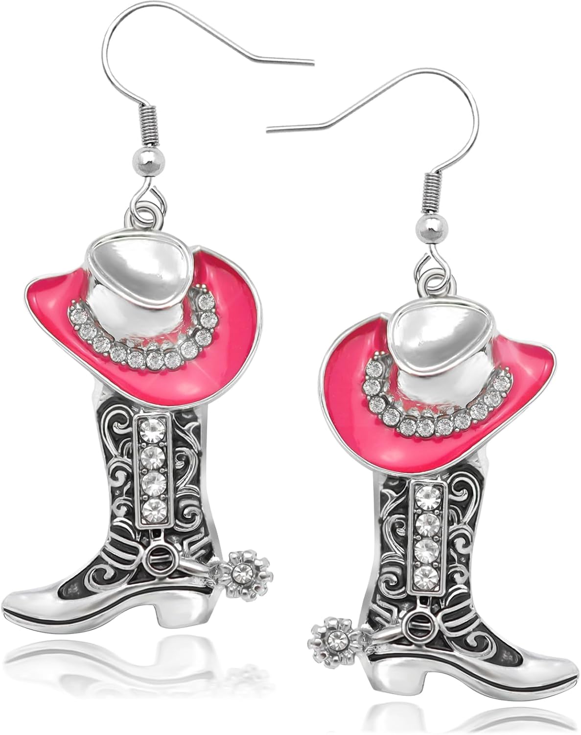 RechicGu Western Cowgirl Hat Boots Earrings Enamel Cowboy Hat Sparkly Rhinestone Boot Dangle Earrings Prom Country Concerts Rodeo Cowboy Outfits Jewelry Gift for Women