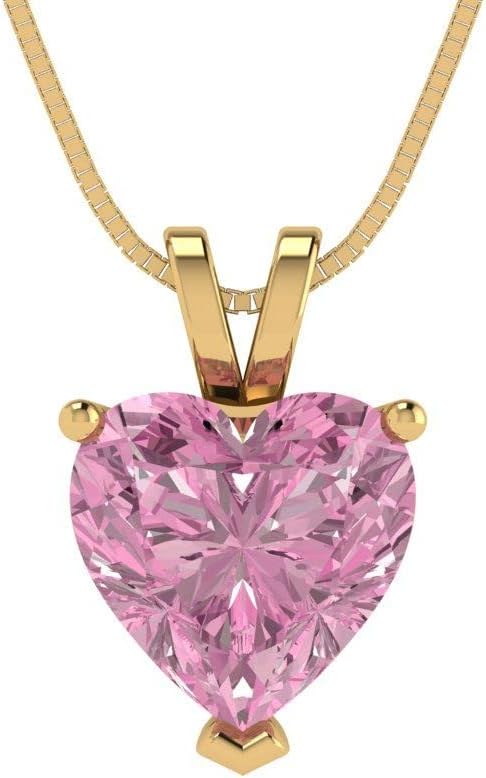 Clara Pucci 2 cttw Pink Simulated Diamond Yellow Gold-Plated Silver Necklace and Pendant for Women (16" Box Chain,Heart Cut,8mm)