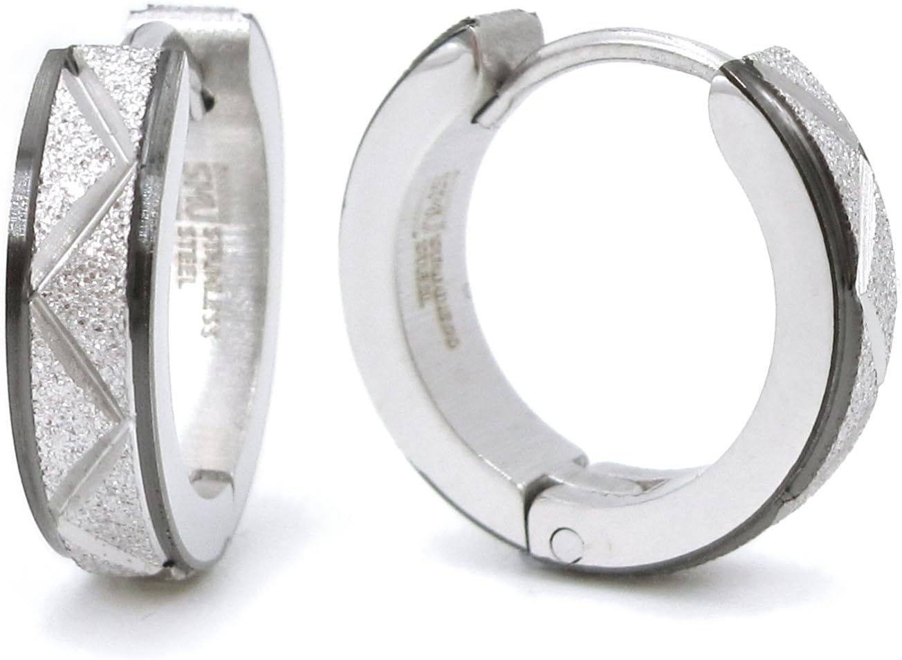 Stainless Steel Mens Hoop Earrings Zig Zag Stripe Gold-tone Black Bevel Edge