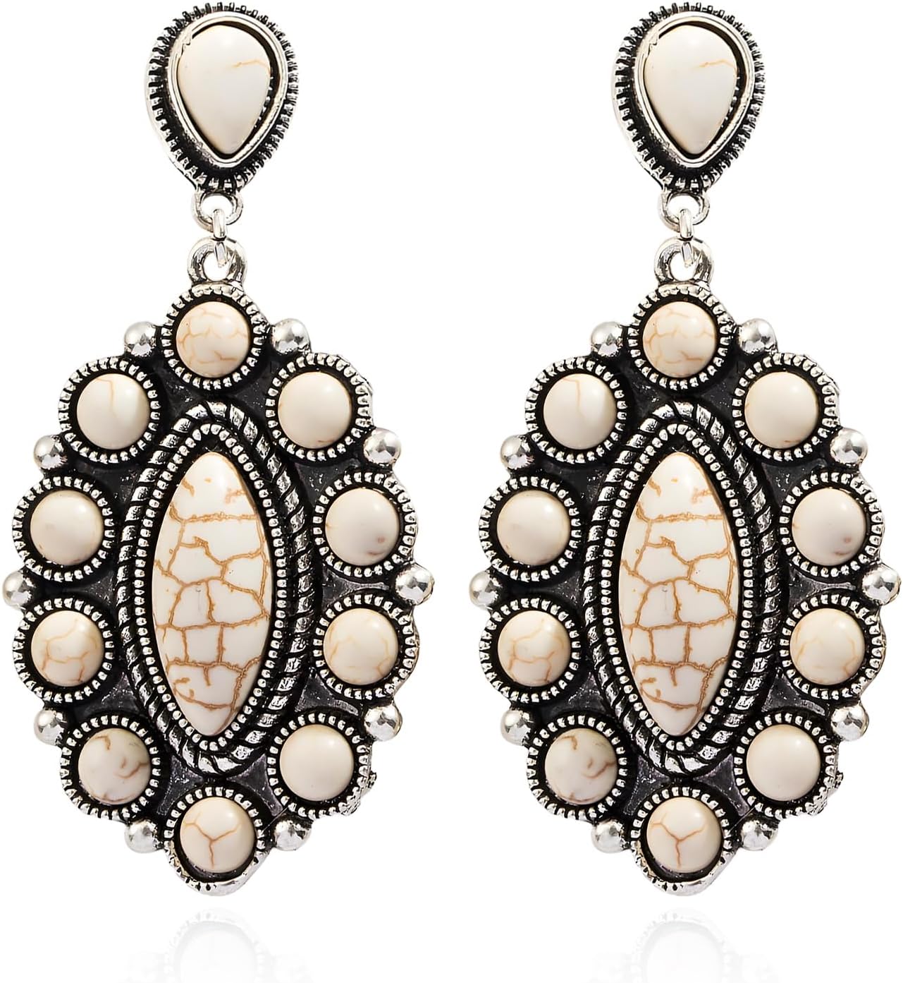 Western Earrings for Women White Turquoise Boho Statement Western Outfit Country Concert Jewelry