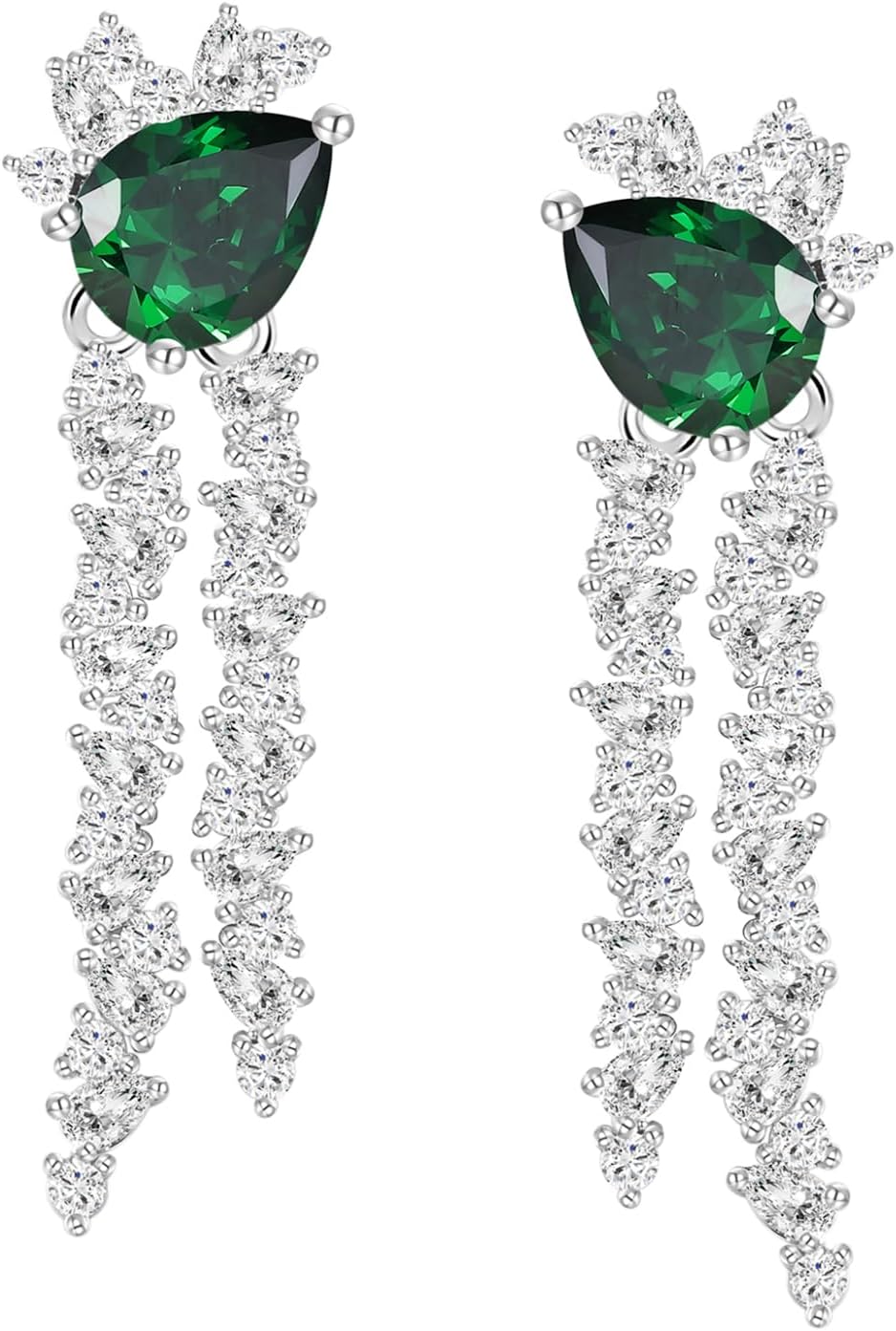Drop Dangle Earrings for Women Teardrop Green Created Emerald Cubic Zirconia CZ 925 Sterling Silver Post Pageant Wedding Bridal Earring