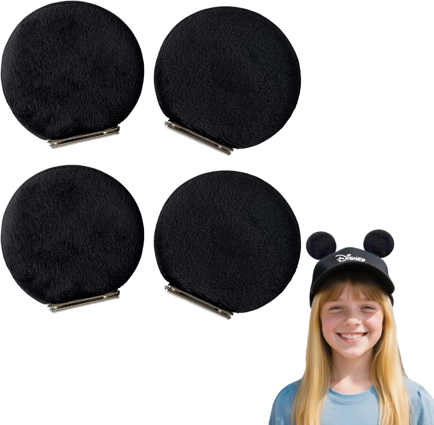 4 PCS Magnetic Mouse Ears for Cap,Removable Hat Decoration for Theme Parks & Halloween, Christmas Parties.
