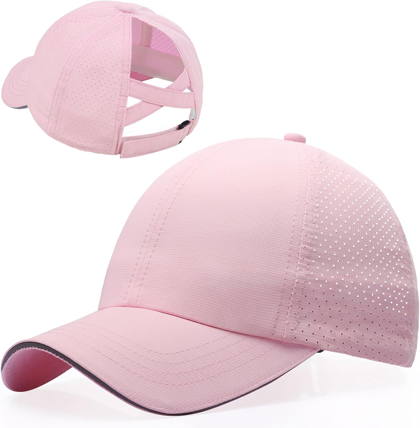 Little Girls Reflective Baseball Cap Criss Cross Ponytail Hat Kids Quick Dry Mesh Summer Sports Hat for Toddler Ages 3-8