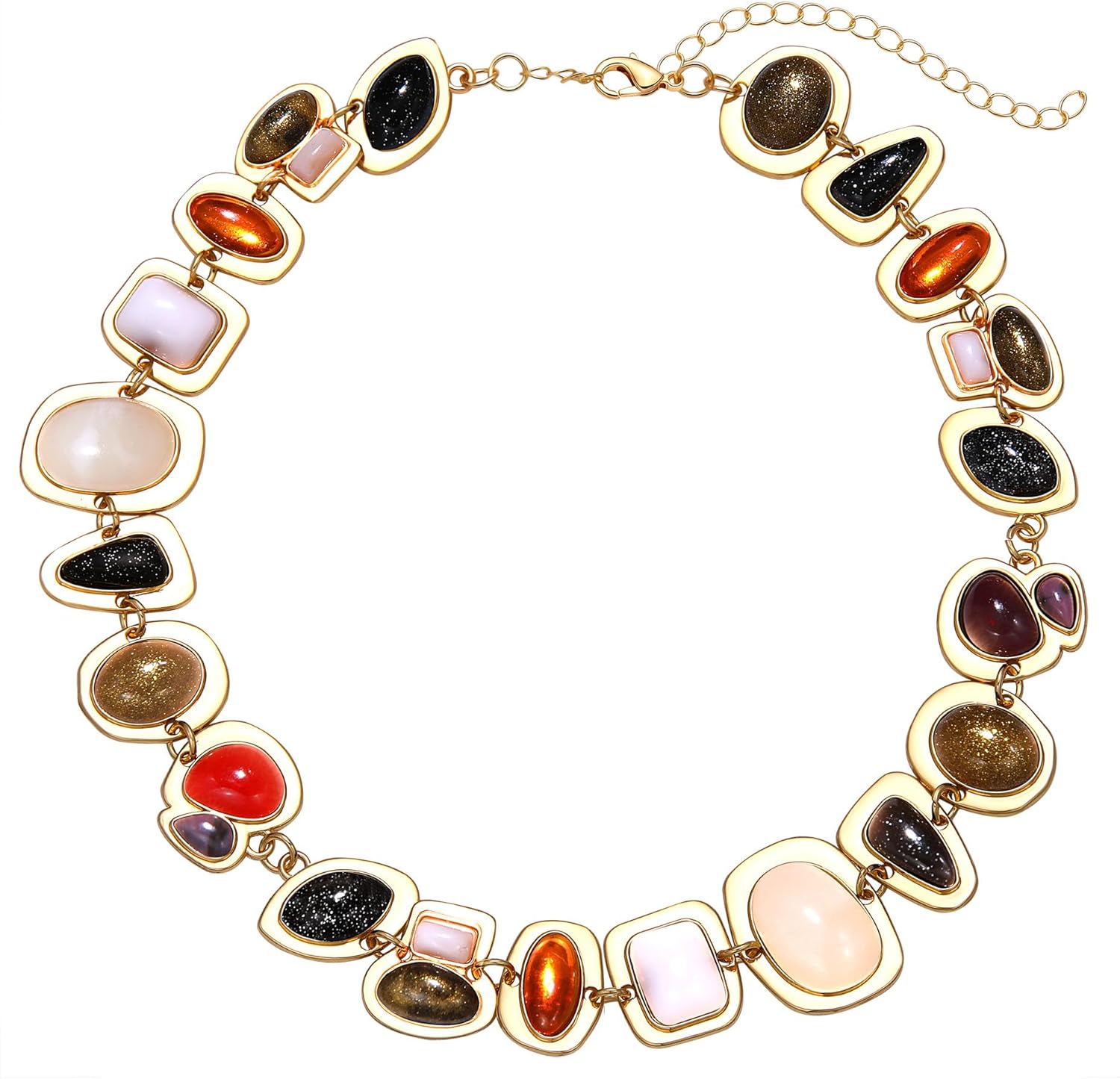 BVGA Gold Gemstone Charm Choker Necklace for Women Colorful Vintage Resin Gem Link Necklace Retro Jewelry Gifts