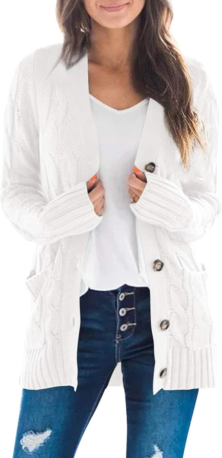 ZESICA Women's Cardigan Sweaters 2026 Spring Button Down Open Front Cable Knit Casual Trendy Clothing Outerwear