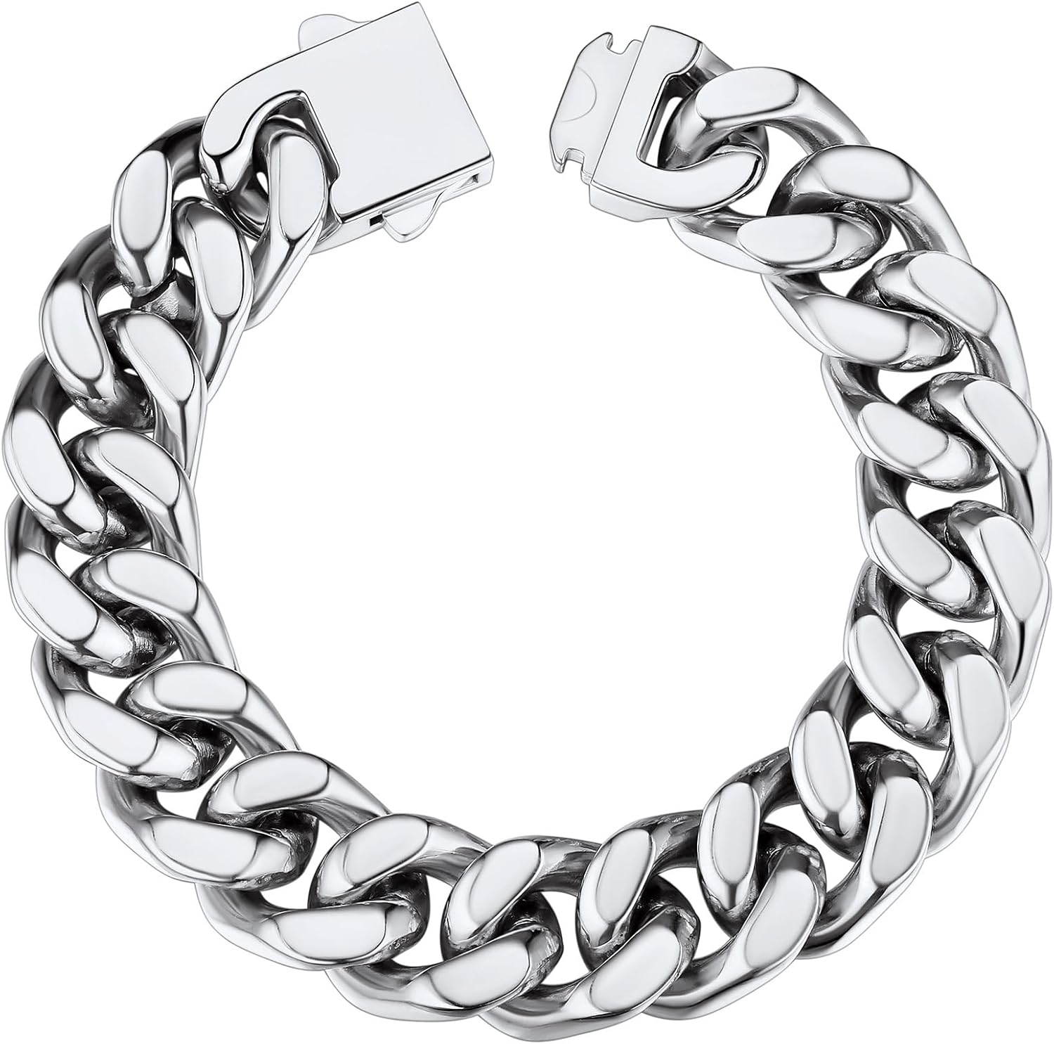 ChainsHouse Stainless Steel Cuban Link Bracelet for Men, 5mm/7mm/9mm/12mm Width, 7.5"/8.3"/9" Length, Black/18K Gold Plated Chain Wrist Bracelets for Men, with Gift Box