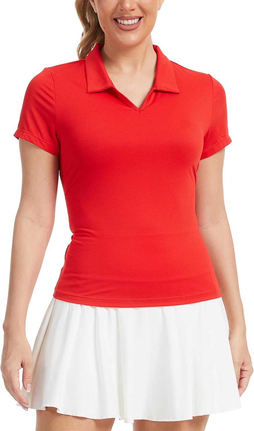 MathCat Womens Golf Shirt Short Sleeve Tennis Polo Shirts UPF50+ Sun Protection V Neck Collared Quick Dry Workout Tops