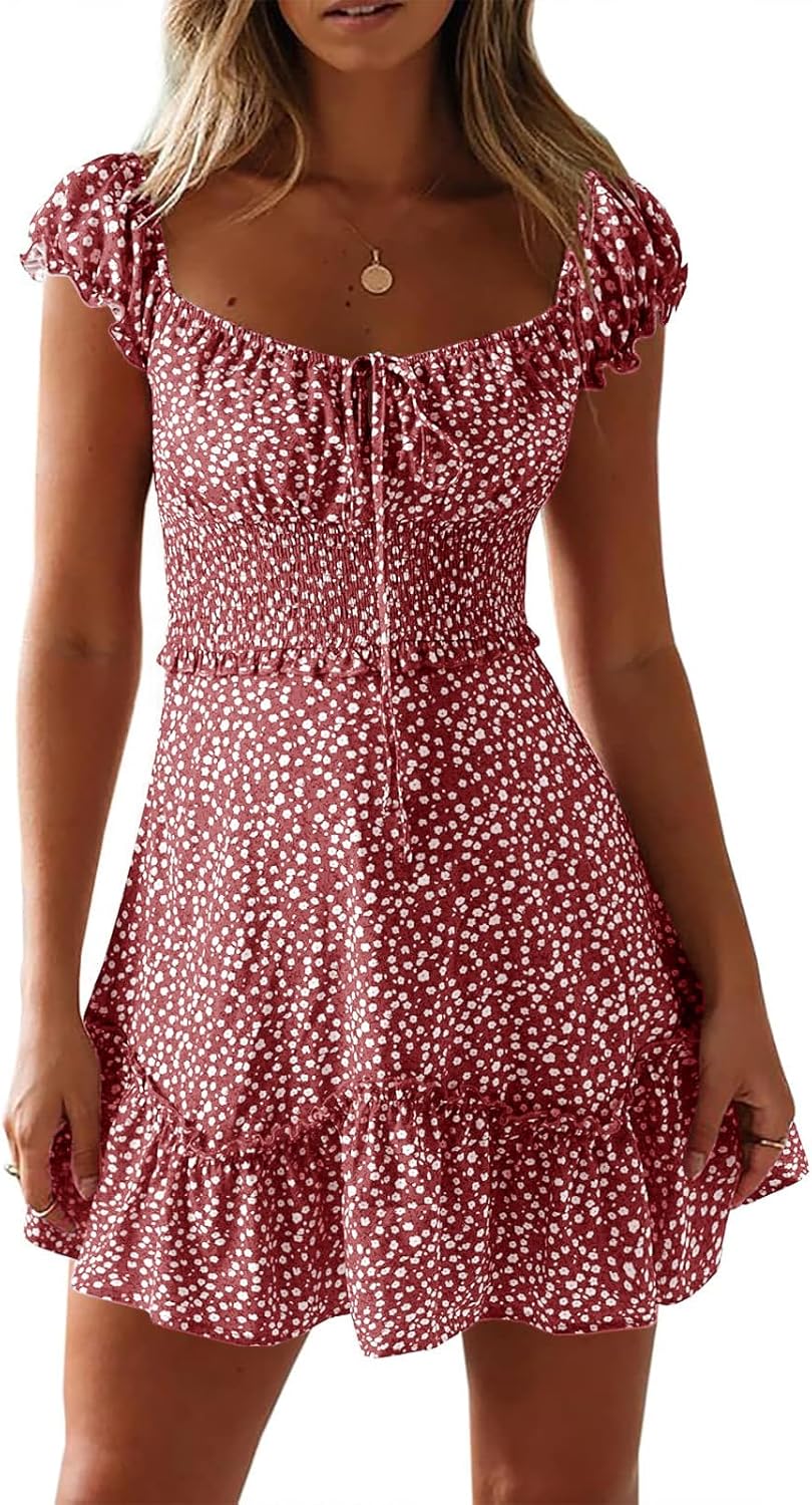 YOBECHO Womens Summer Sexy Sweetheart Collar Printed Ruffle Mini Dress