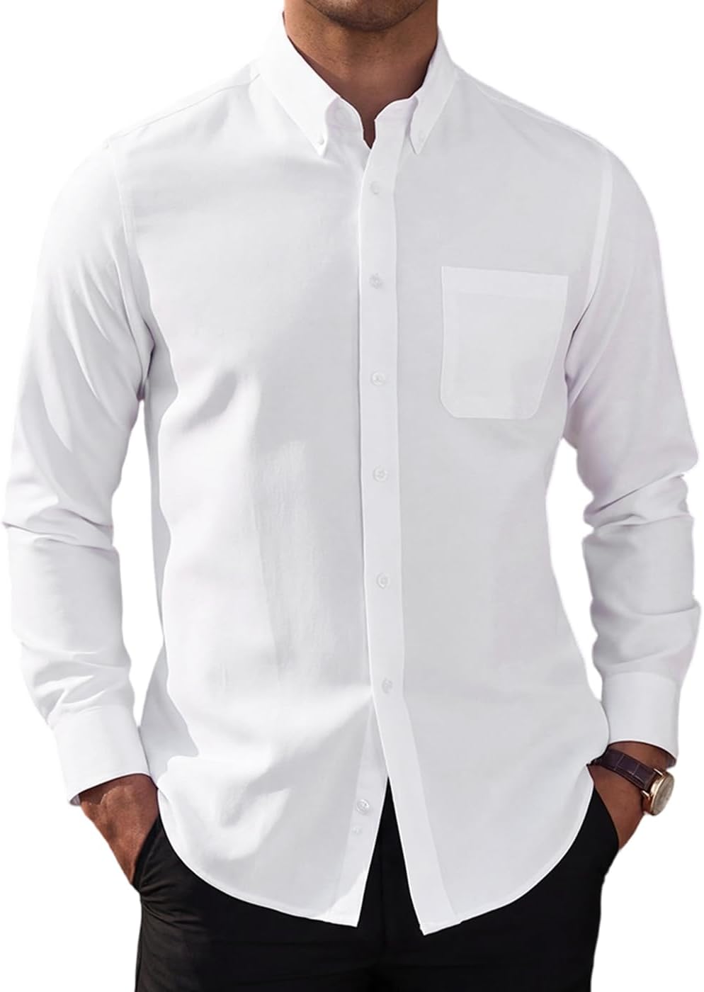 Demofair Men's Classic Oxford Shirt Solid Long Sleeve Button Down Casual Woven Shirts with Pocket