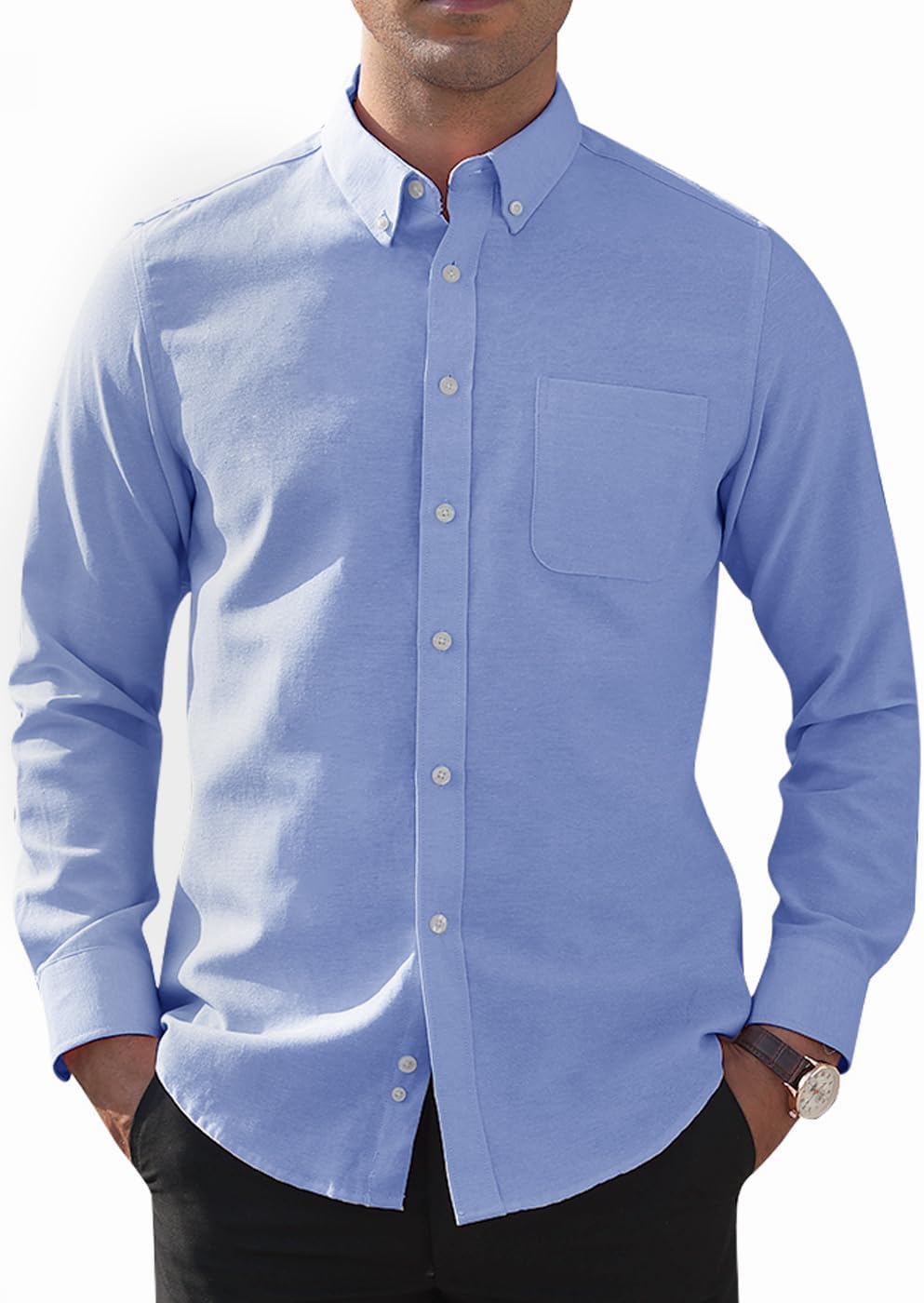 Demofair Men's Classic Oxford Shirt Solid Long Sleeve Button Down Casual Woven Shirts with Pocket