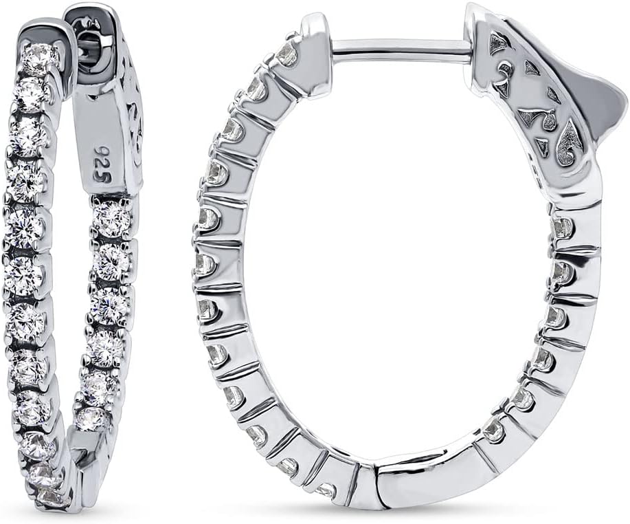 BERRICLE Sterling Silver Rose/Yellow Gold Flashed CZ Small/Large Statement Hoop Earrings for Women, Minimalist Simulated Diamond Cubic Zirconia Huggie Earrings - Trendy Inside-Out Designs