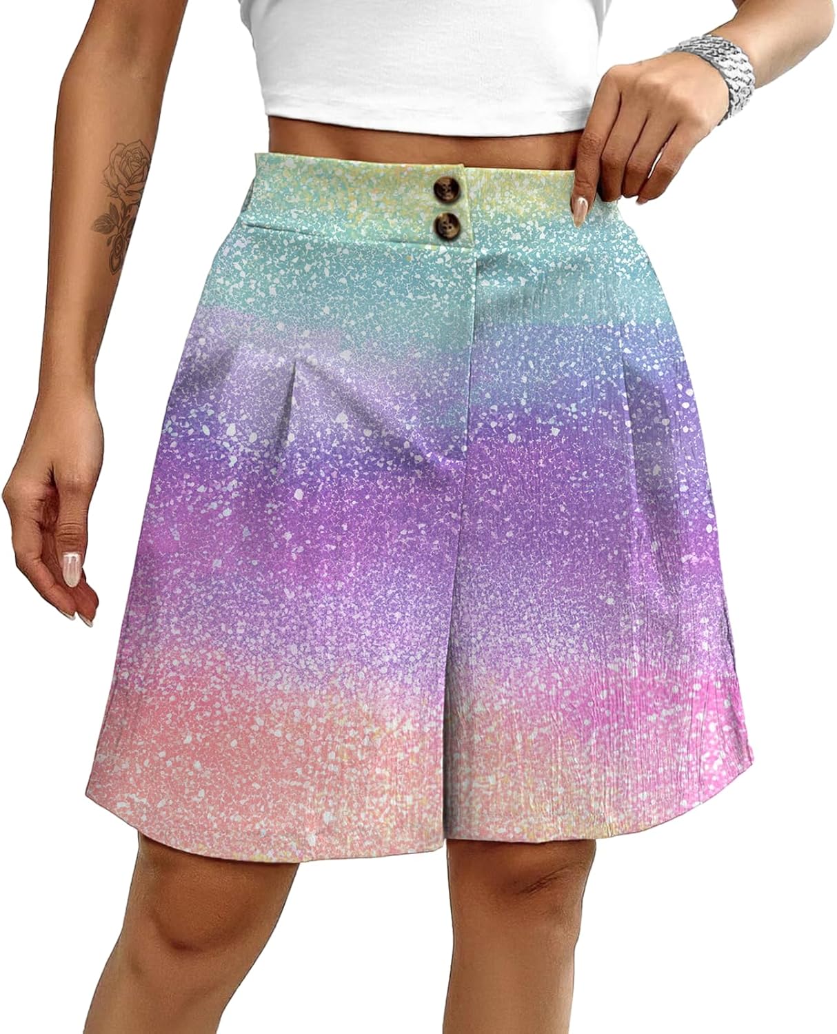 Workout Shorts Women High Waisted Button Down Loose Fit Boho Floral Beach Vacation Summer Casual Trendy Pants