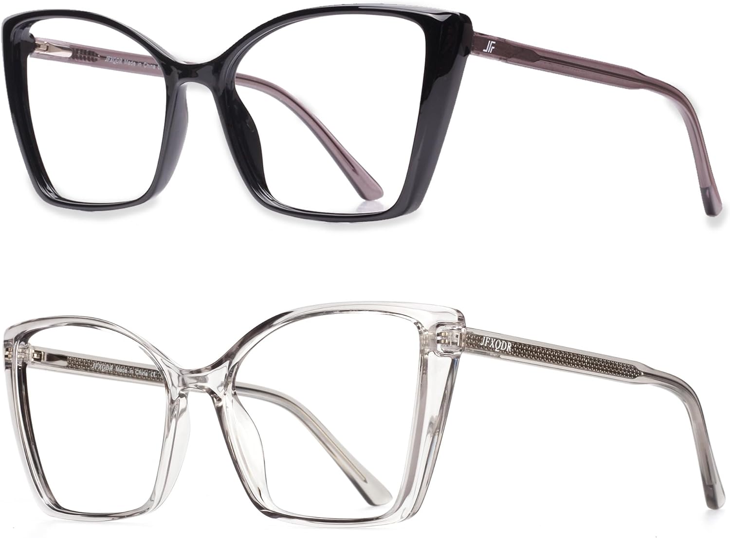2 Pack Blue Light Blocking Glasses for Women, Oversized Trendy Cat Eye Computer Gaming Glasses Anti Glare & UV Glare RF6204 (Black + Clear Grey Cateye Frame)