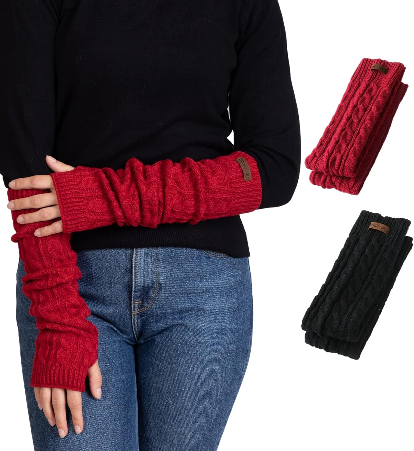 Brook + Bay Arm Warmers Women Men - Fingerless Long Arm Warmer - Knit Armwarmers with Thumb Hole - Fingerless Long Gloves - Stay Warm and Cozy with Extra Thick Cable Knit Design