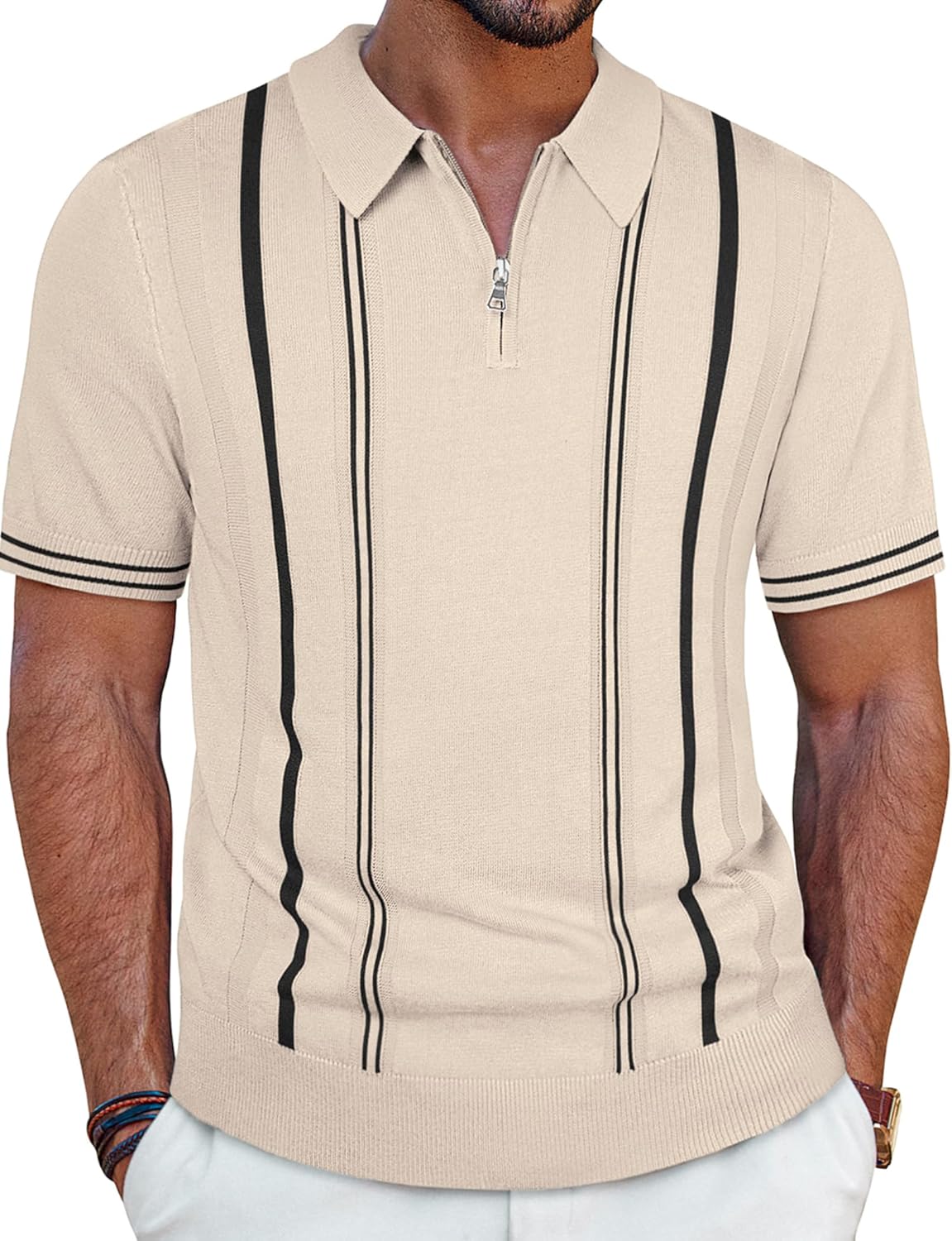 PJ PAUL JONES Mens Knit Polo Shirts Short Sleeve Quarter Zip Golf Shirt Vintage Shirts for Men