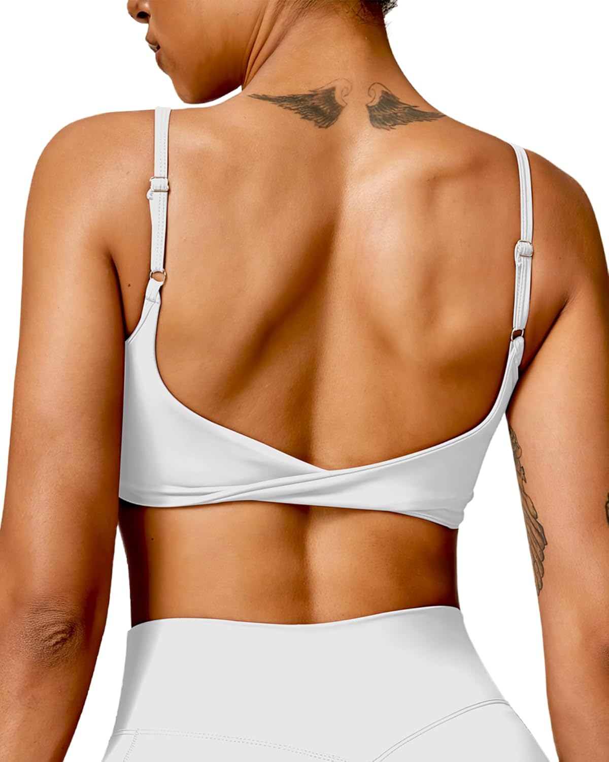 QUOJIZY Sports Bras for Women Open Back Workout Tops for Women Yoga Bra Spaghetti Straps Twist Back
