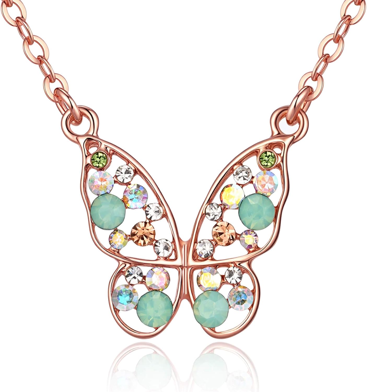 EVEVIC Austrian Crystal Butterfly Pendant Necklaces for Women 14K Gold Plated Rhinestone Necklace Hypoallergenic Jewelry Gifts