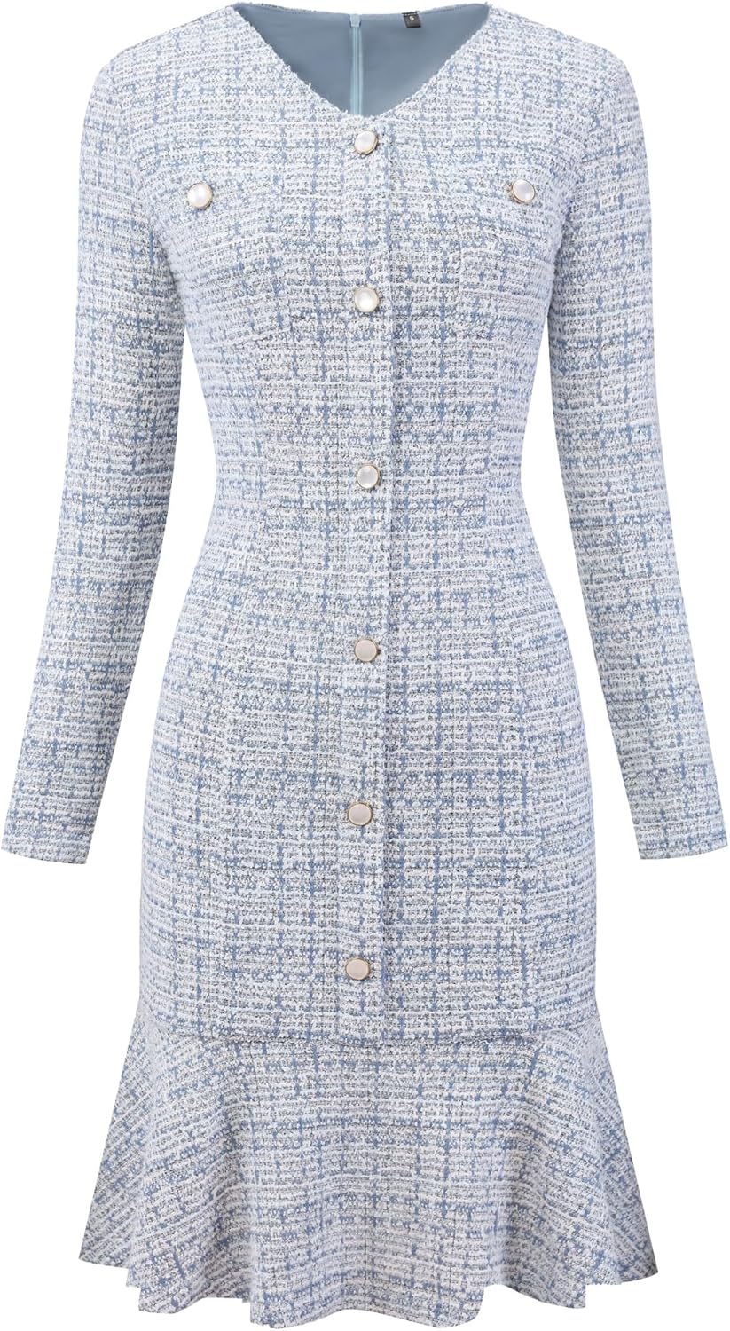 Women's Tweed Dress 2025 Long Sleeve Wedding Cocktail Bodycon Fishtail Dresses