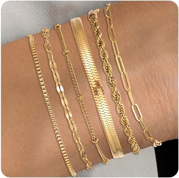 Silver and Gold Bracelets for Women Non Tarnish Waterproof Gold bracelet stack set, Adjustable 6.5"+2" Extender, Layered Bracelets for Women,Exquisite Jewelry Gift