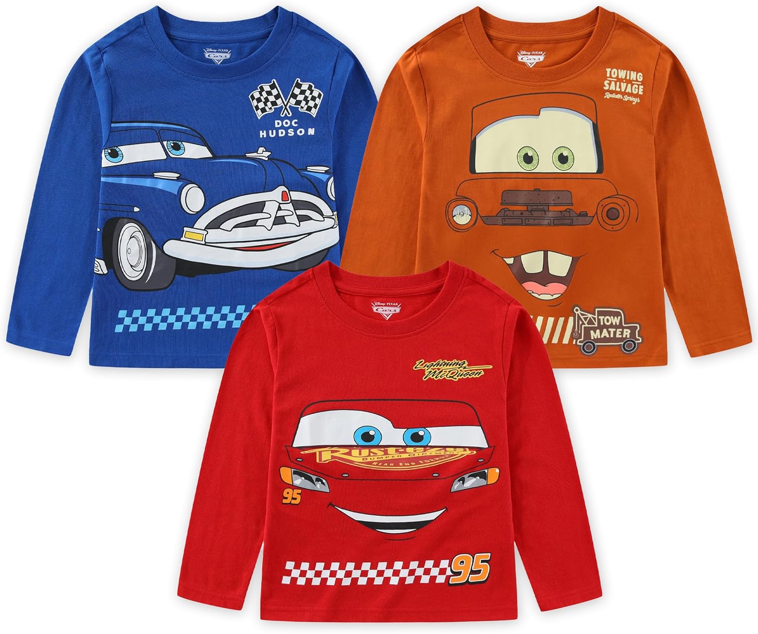 Disney Cars Lightning McQueen Boys 3 Pack Long Sleeve Shirt for Toddler and Big Kids