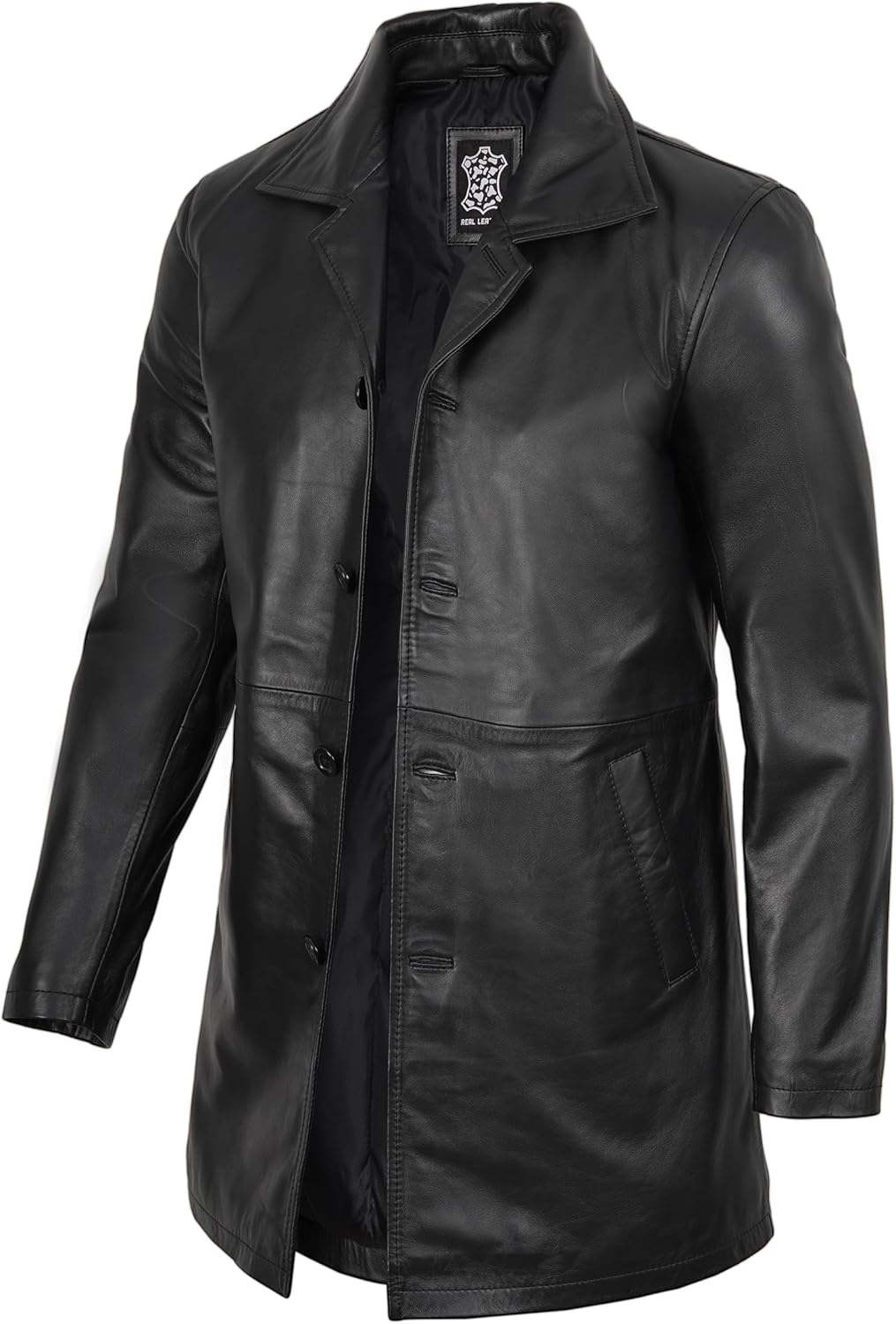 fjackets Leather Jacket Mens - Real Lambskin Leather Jackets for Men Carcoat Style Men's Leather Coats