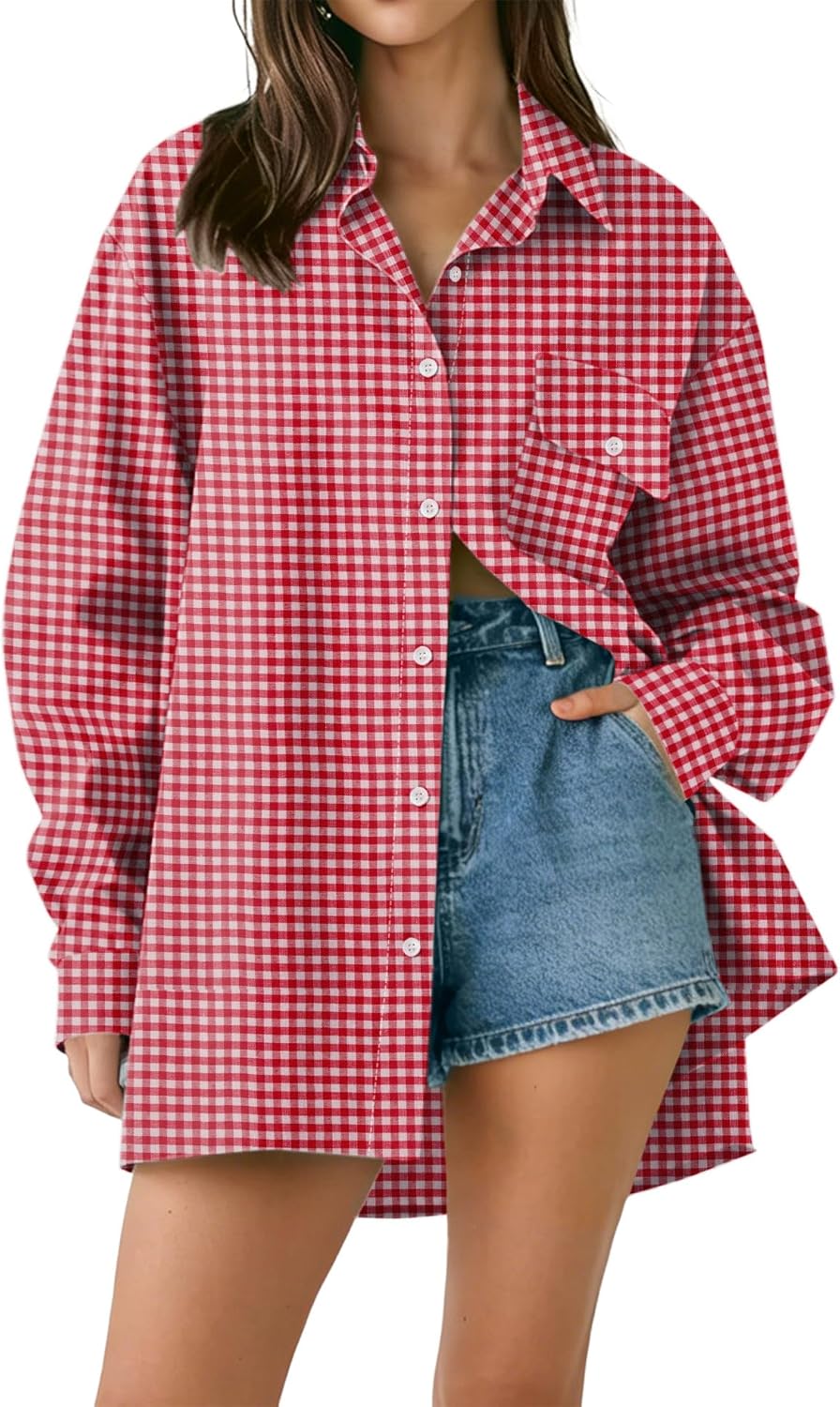 AKEWEI Button Down Shirts for Women Long Sleeve Collared Work Blouse Fashion Oversized Office Shirts with Pocket