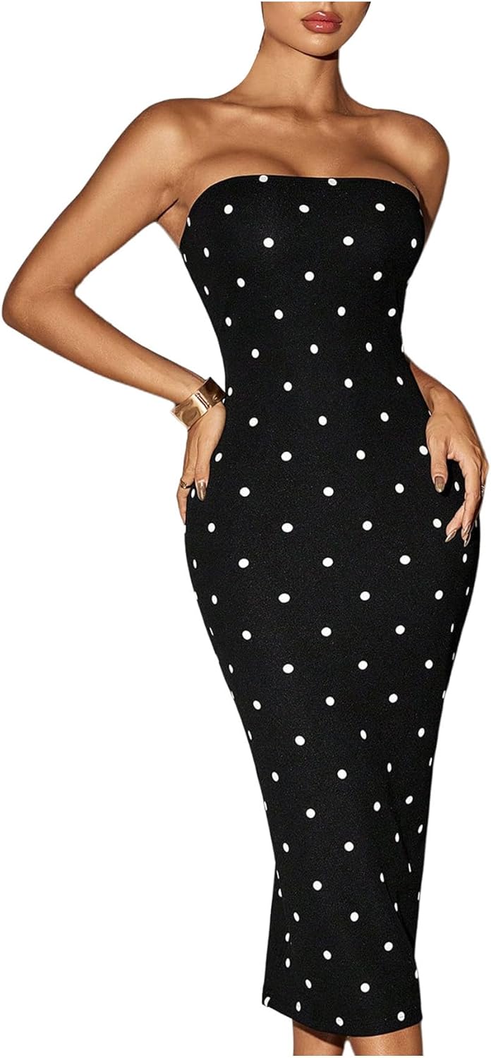 WDIRARA Women's Polka Dots Strapless Tube Dress Cocktail Party Bodycon Midi Dresses